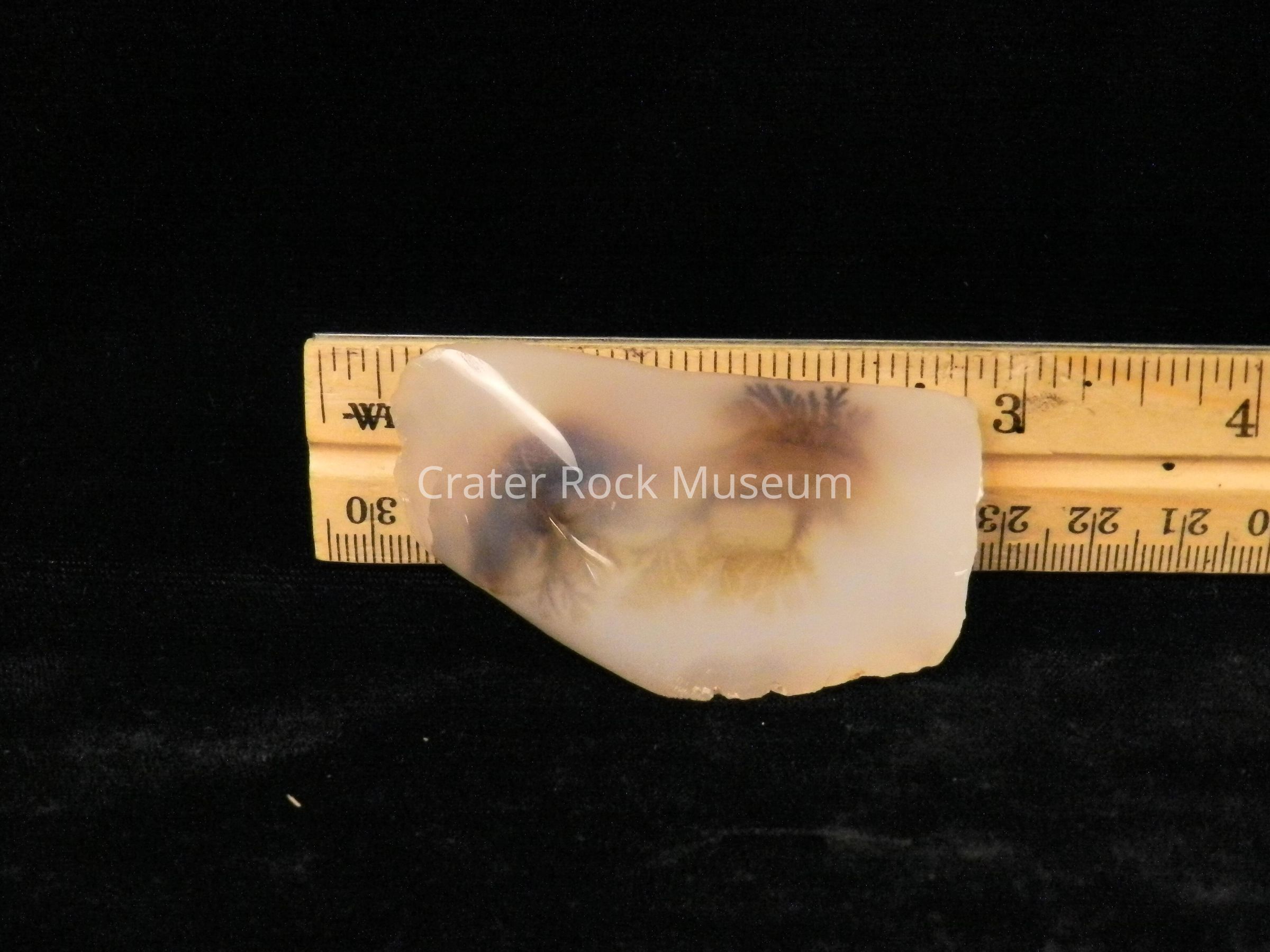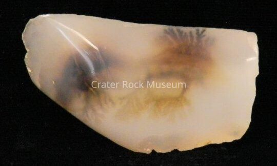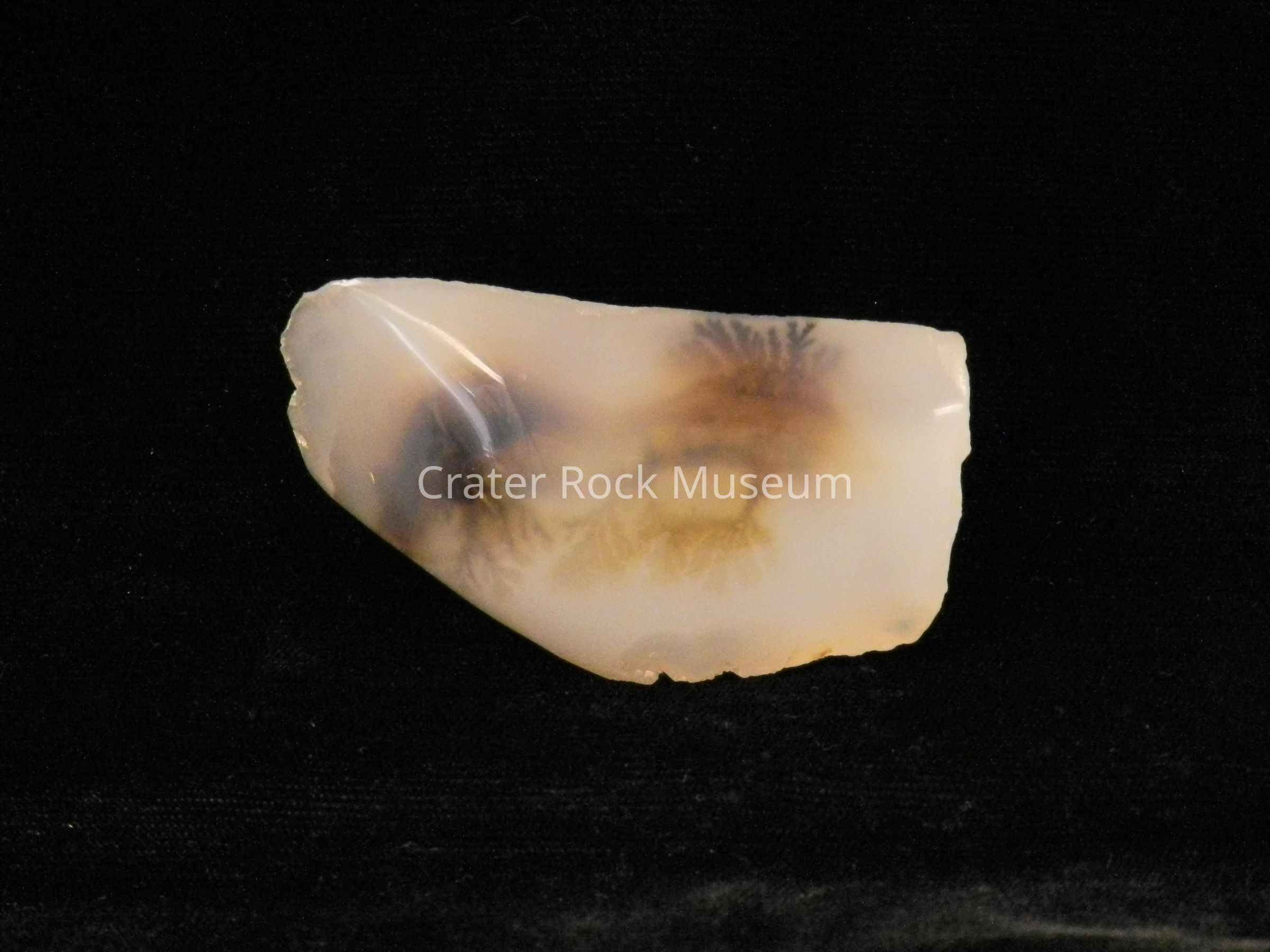 Dendritic agate is a whitish-gray or colorless chalcedony with tree- or fern-like markings known as dendrites. The variety name agate is used for this gem even though it does not exhibit the banding typical of agate.The dendrites in dendritic agate are iron or manganese inclusions, usually brown or black in color. Though they appear organic due to their fern-like structure, they are actually inorganic; they are formed at fine fracture surfaces through crystallization of weathered solutions of neighboring rock.