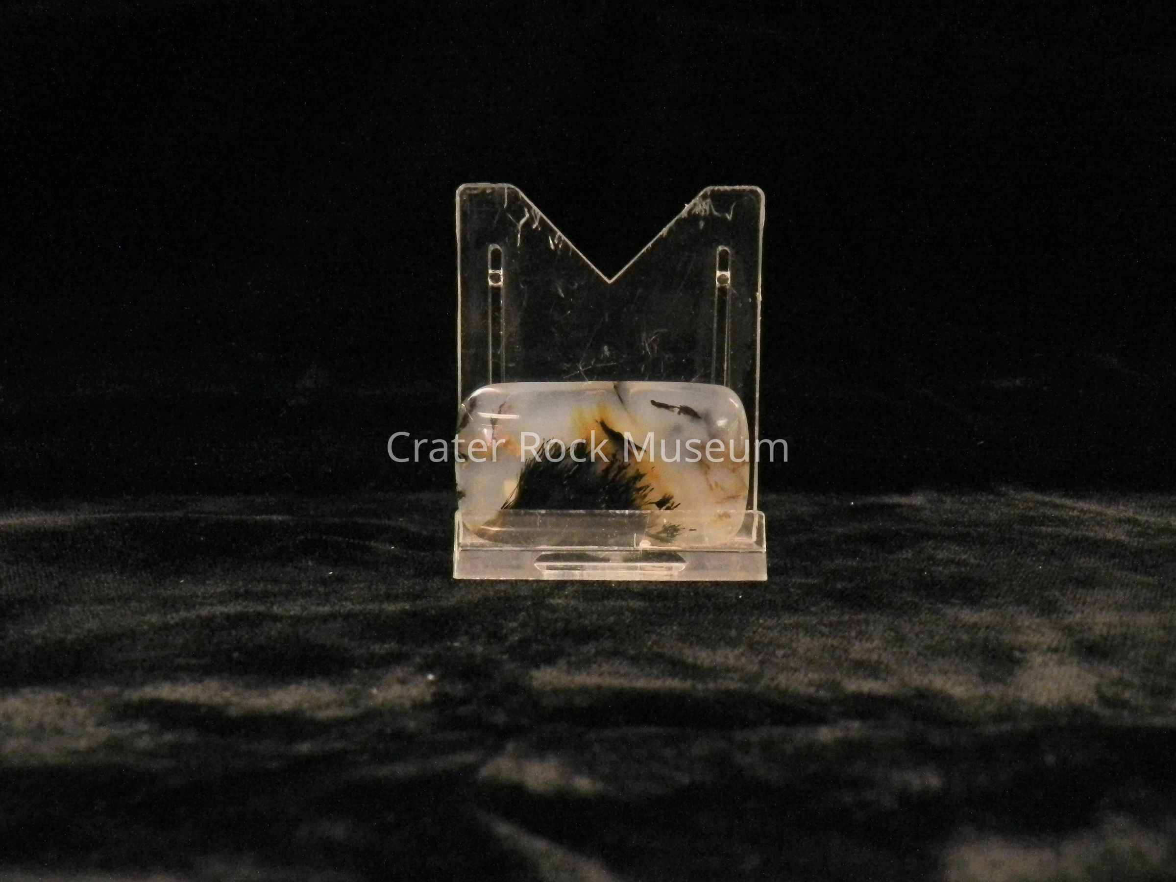 Dendritic agate is a whitish-gray or colorless chalcedony with tree- or fern-like markings known as dendrites. The variety name agate is used for this gem even though it does not exhibit the banding typical of agate.The dendrites in dendritic agate are iron or manganese inclusions, usually brown or black in color. Though they appear organic due to their fern-like structure, they are actually inorganic; they are formed at fine fracture surfaces through crystallization of weathered solutions of neighboring rock.