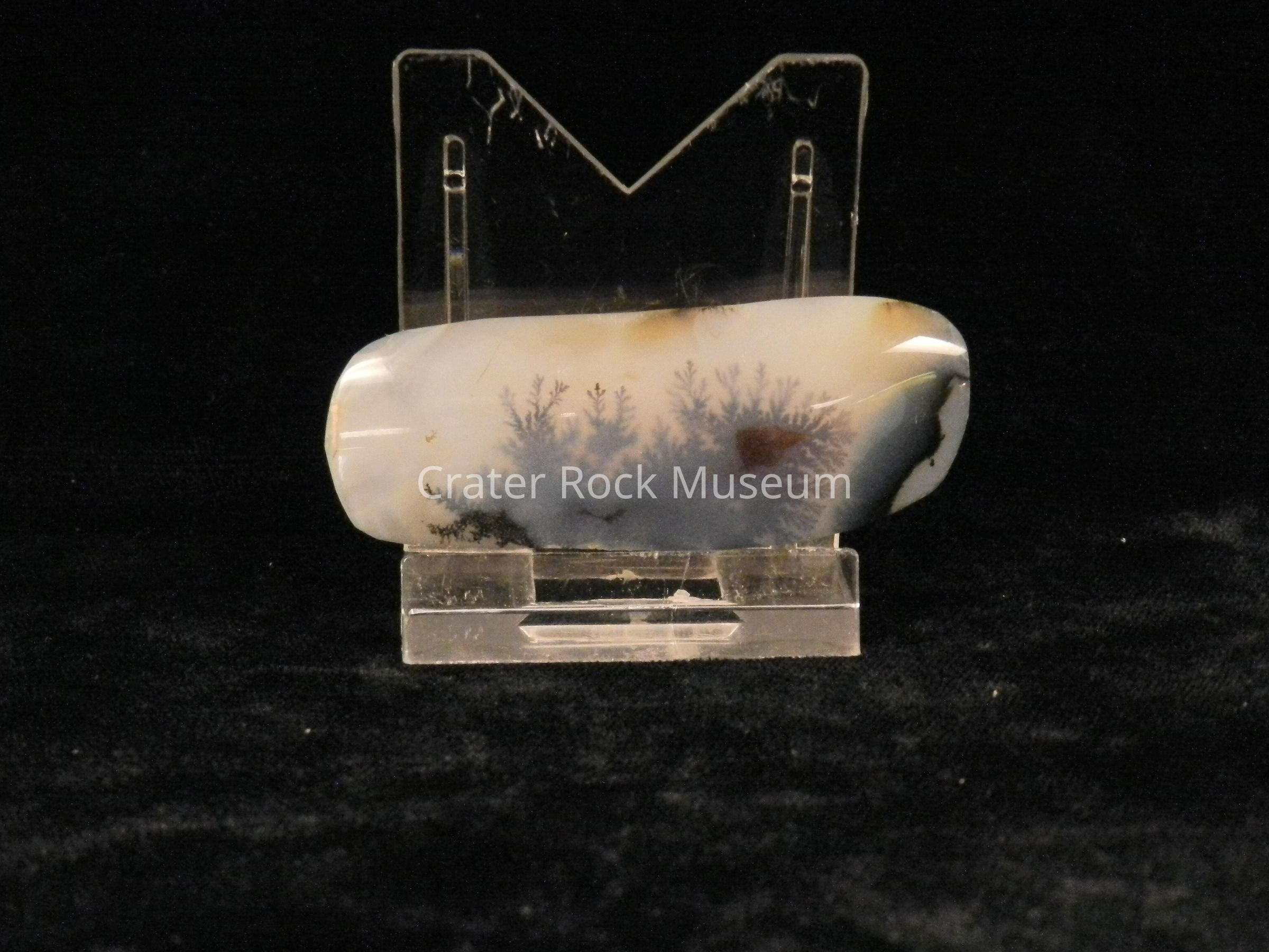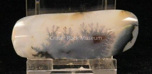 Dendritic agate is a whitish-gray or colorless chalcedony with tree- or fern-like markings known as dendrites. The variety name agate is used for this gem even though it does not exhibit the banding typical of agate.The dendrites in dendritic agate are iron or manganese inclusions, usually brown or black in color. Though they appear organic due to their fern-like structure, they are actually inorganic; they are formed at fine fracture surfaces through crystallization of weathered solutions of neighboring rock.