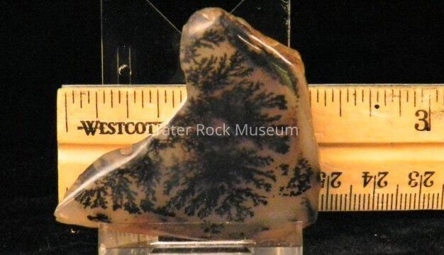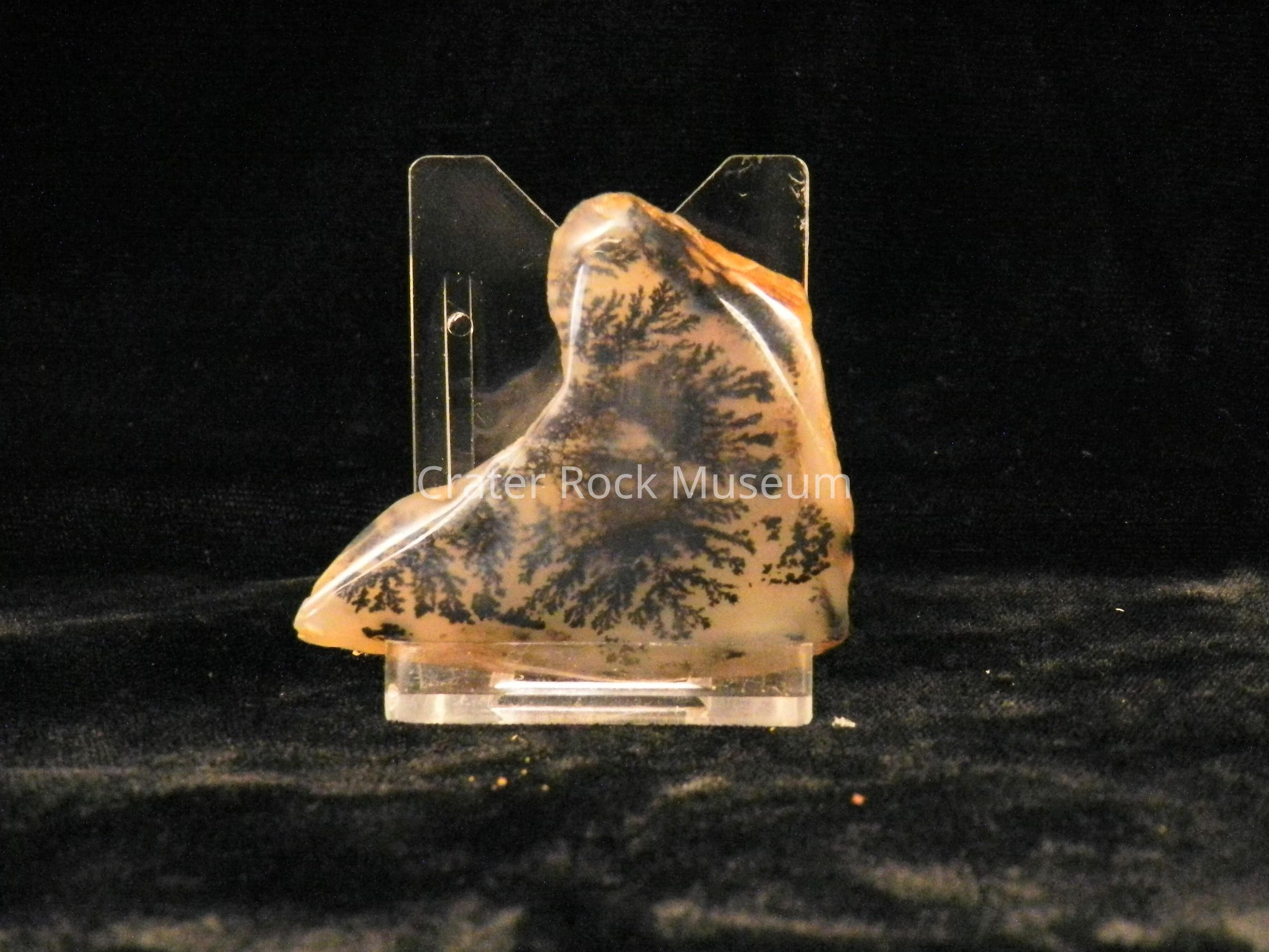 Dendritic agate is a whitish-gray or colorless chalcedony with tree- or fern-like markings known as dendrites. The variety name agate is used for this gem even though it does not exhibit the banding typical of agate.The dendrites in dendritic agate are iron or manganese inclusions, usually brown or black in color. Though they appear organic due to their fern-like structure, they are actually inorganic; they are formed at fine fracture surfaces through crystallization of weathered solutions of neighboring rock.