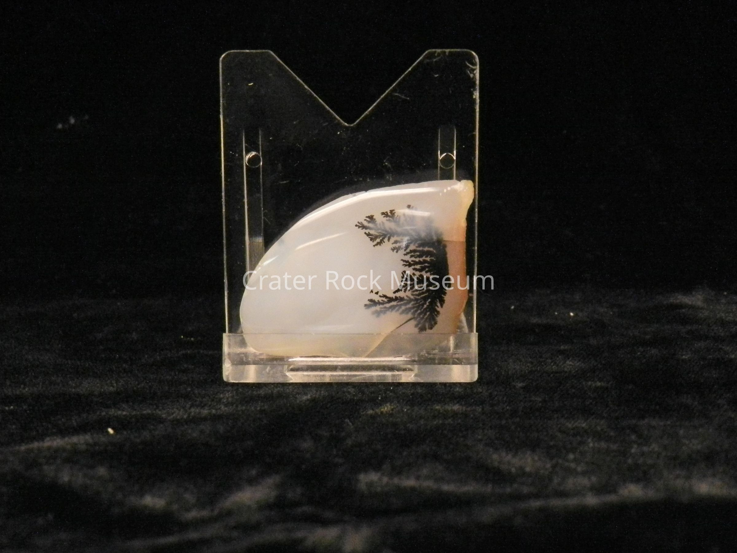 Dendritic agate is a whitish-gray or colorless chalcedony with tree- or fern-like markings known as dendrites. The variety name agate is used for this gem even though it does not exhibit the banding typical of agate.The dendrites in dendritic agate are iron or manganese inclusions, usually brown or black in color. Though they appear organic due to their fern-like structure, they are actually inorganic; they are formed at fine fracture surfaces through crystallization of weathered solutions of neighboring rock.