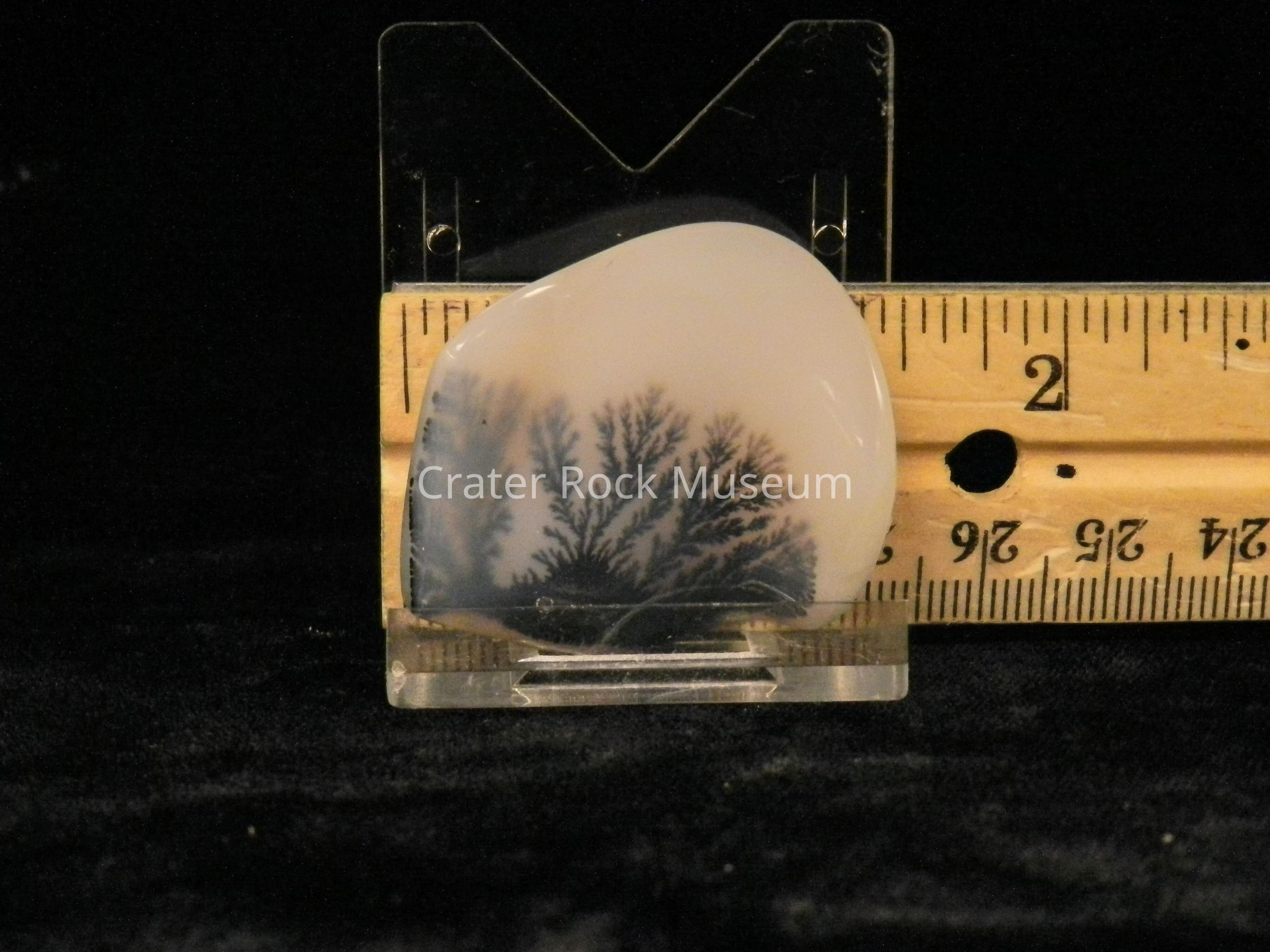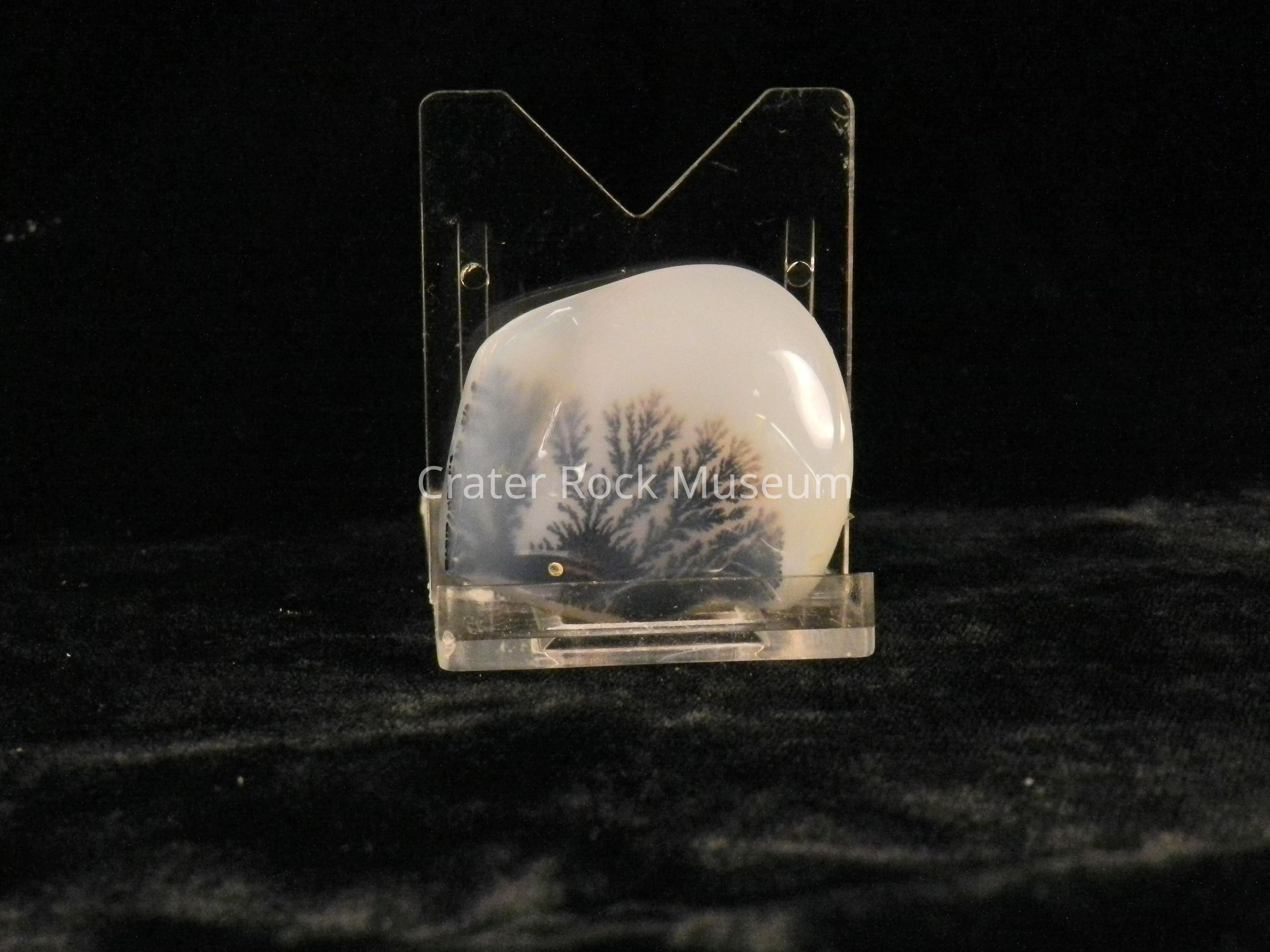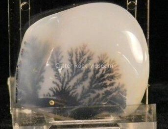 Dendritic agate is a whitish-gray or colorless chalcedony with tree- or fern-like markings known as dendrites. The variety name agate is used for this gem even though it does not exhibit the banding typical of agate.The dendrites in dendritic agate are iron or manganese inclusions, usually brown or black in color. Though they appear organic due to their fern-like structure, they are actually inorganic; they are formed at fine fracture surfaces through crystallization of weathered solutions of neighboring rock.