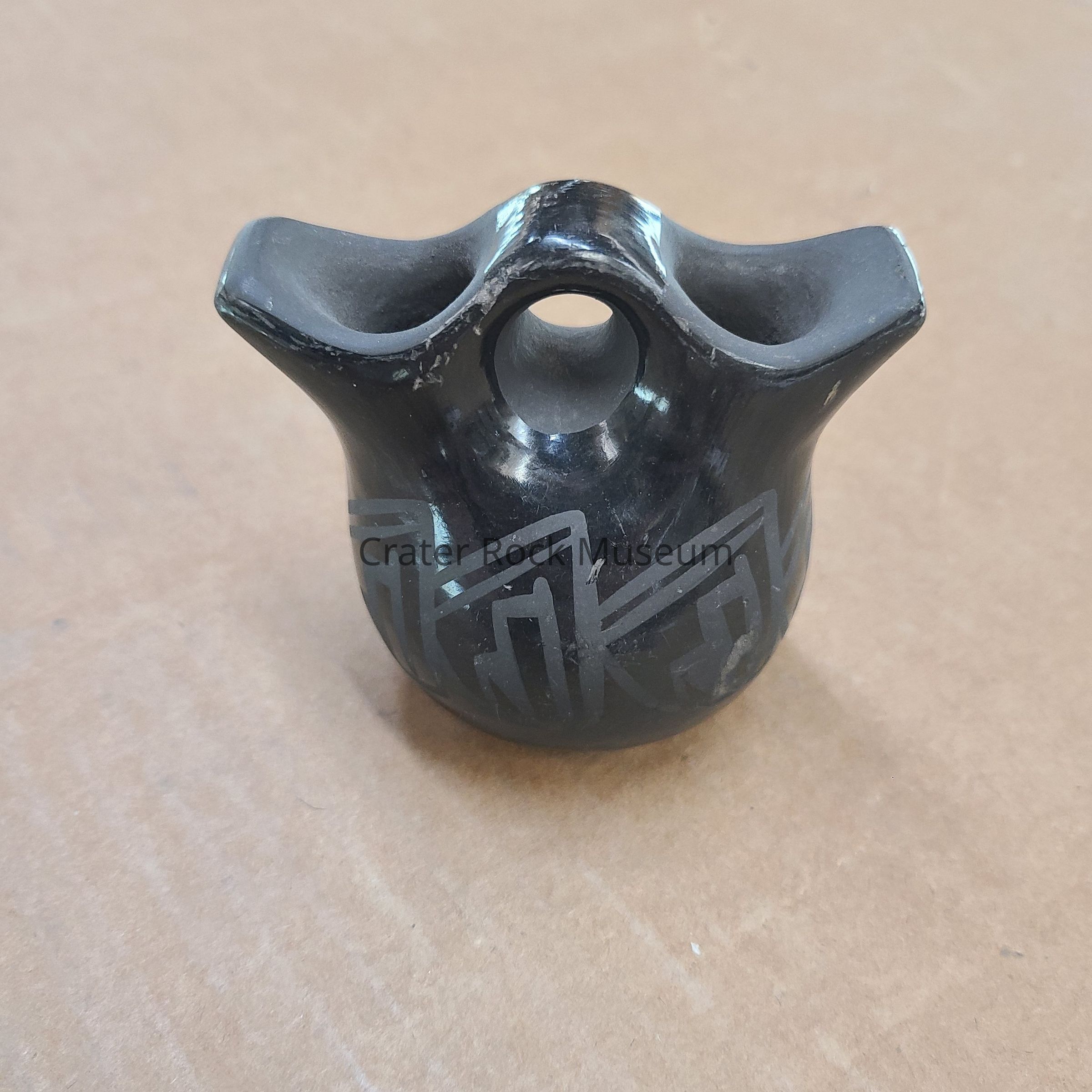 a miniature blackware dual spouted "wedding" vase signed by the artist