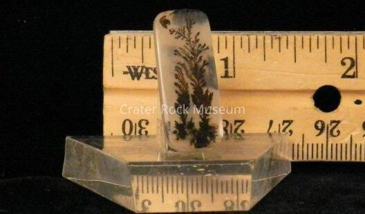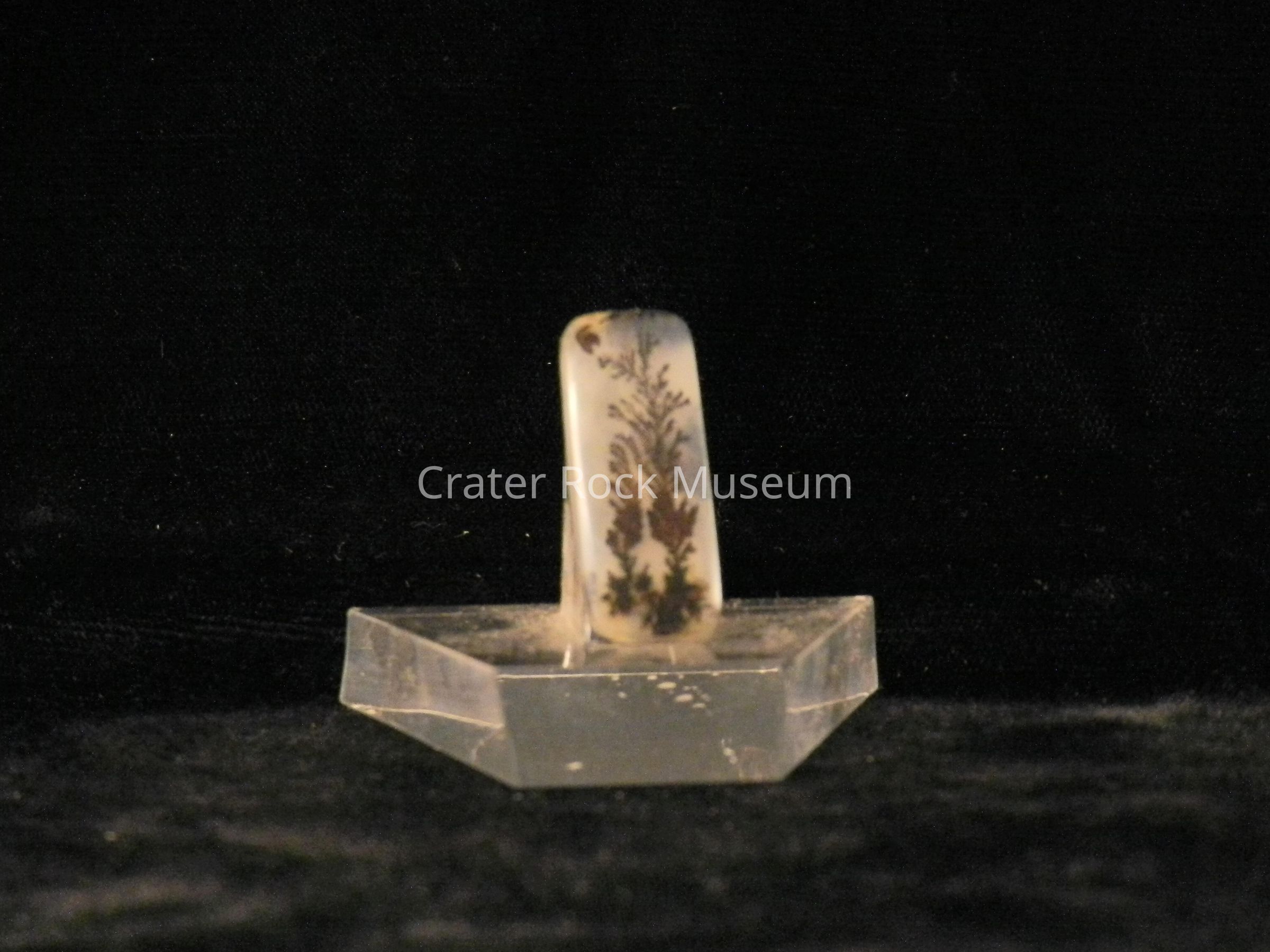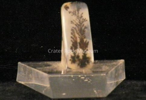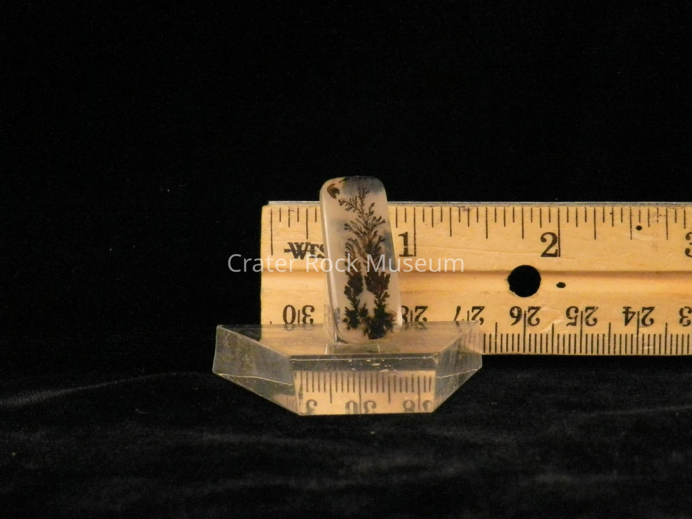 Description: Very thin rectangle with flat back and polished face. Transparent creamy yellow with extended, dendritic, multi-branched structure.Collection