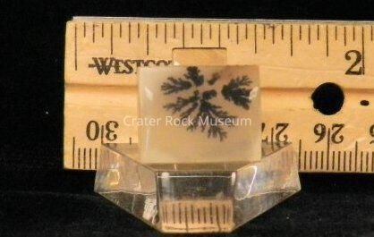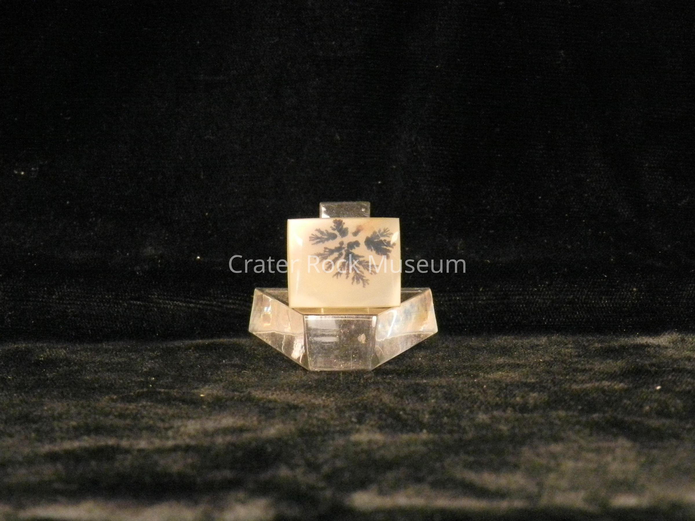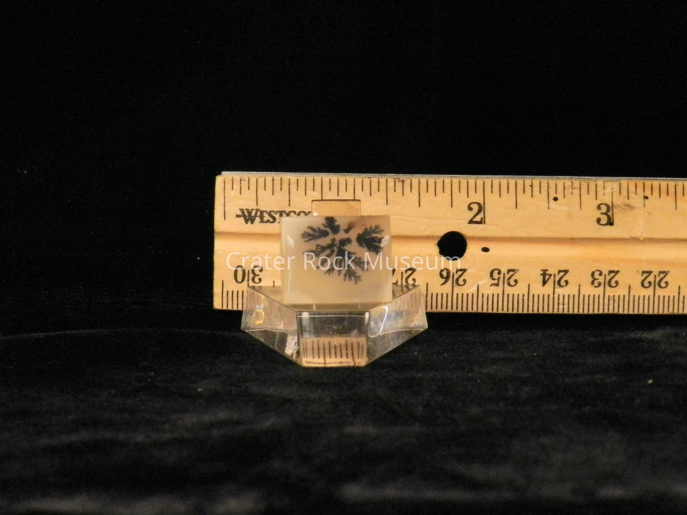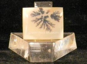 Description: Nearly square, thin slice with slightly convex polished face. Translucent creamy yellow with brown splayed dendritic structure.Collection