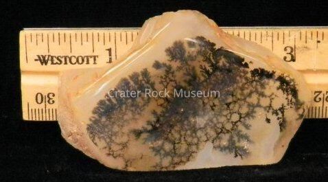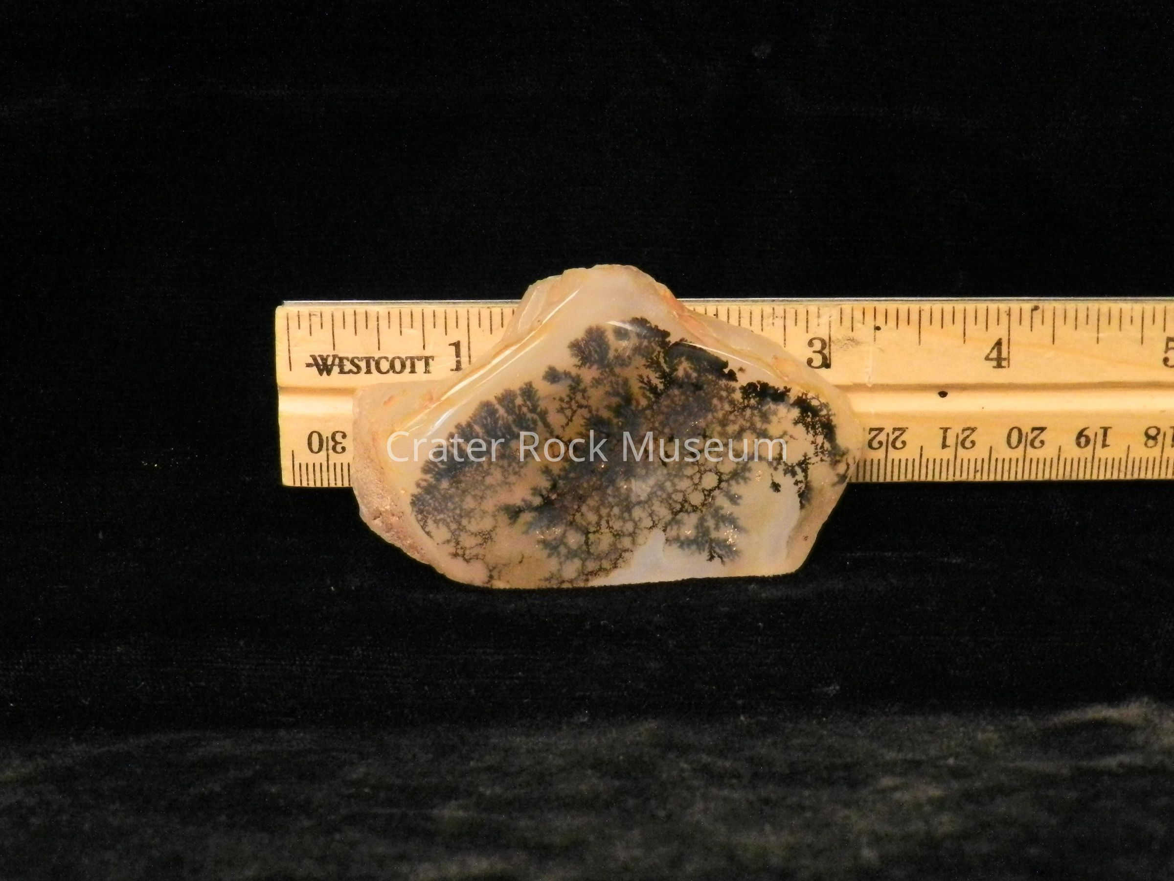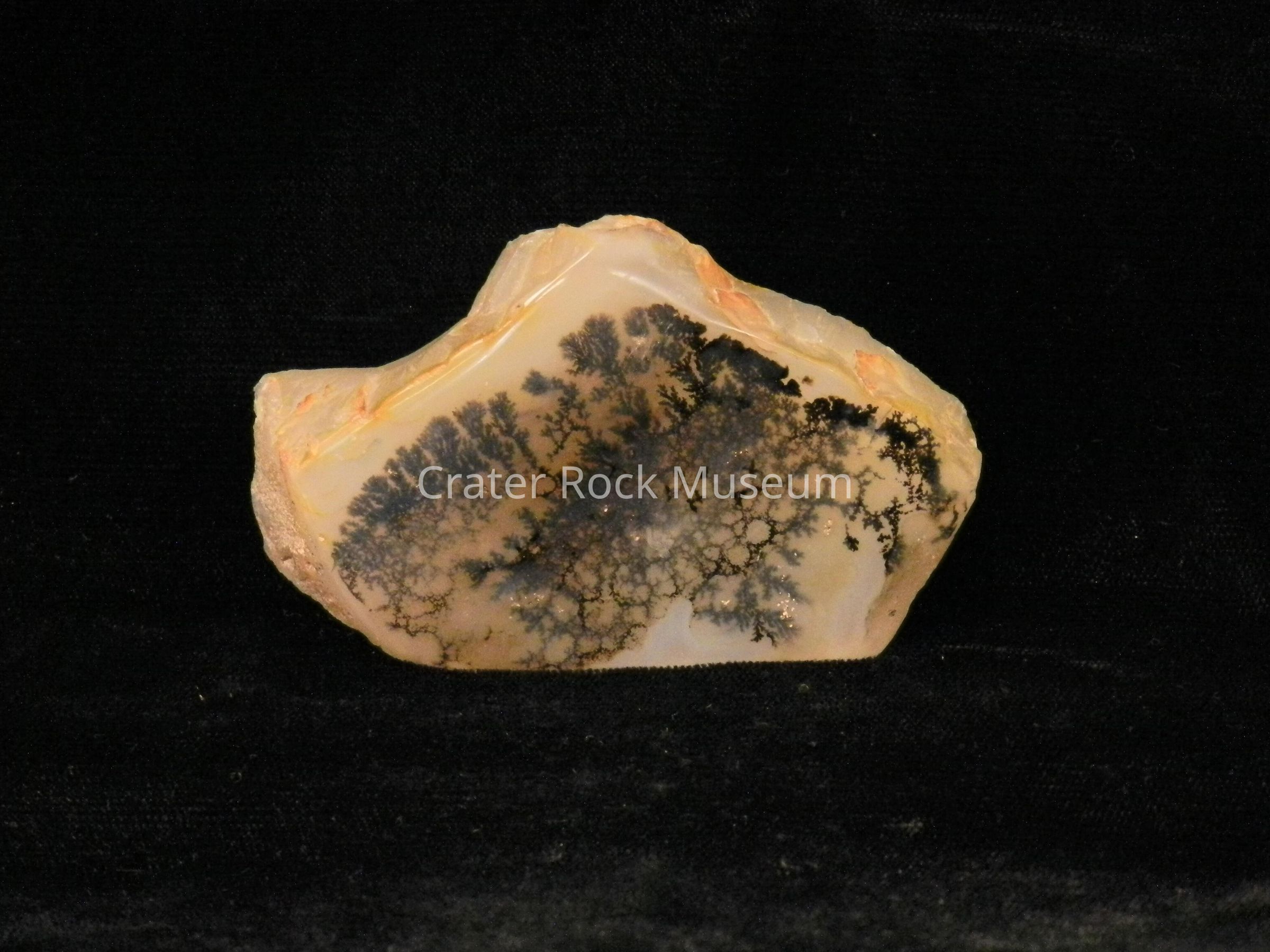 Description: Thick slab with concave polished face. Dendritic structure is a mosaic of branching and orbicular structures covering entire face.Collection