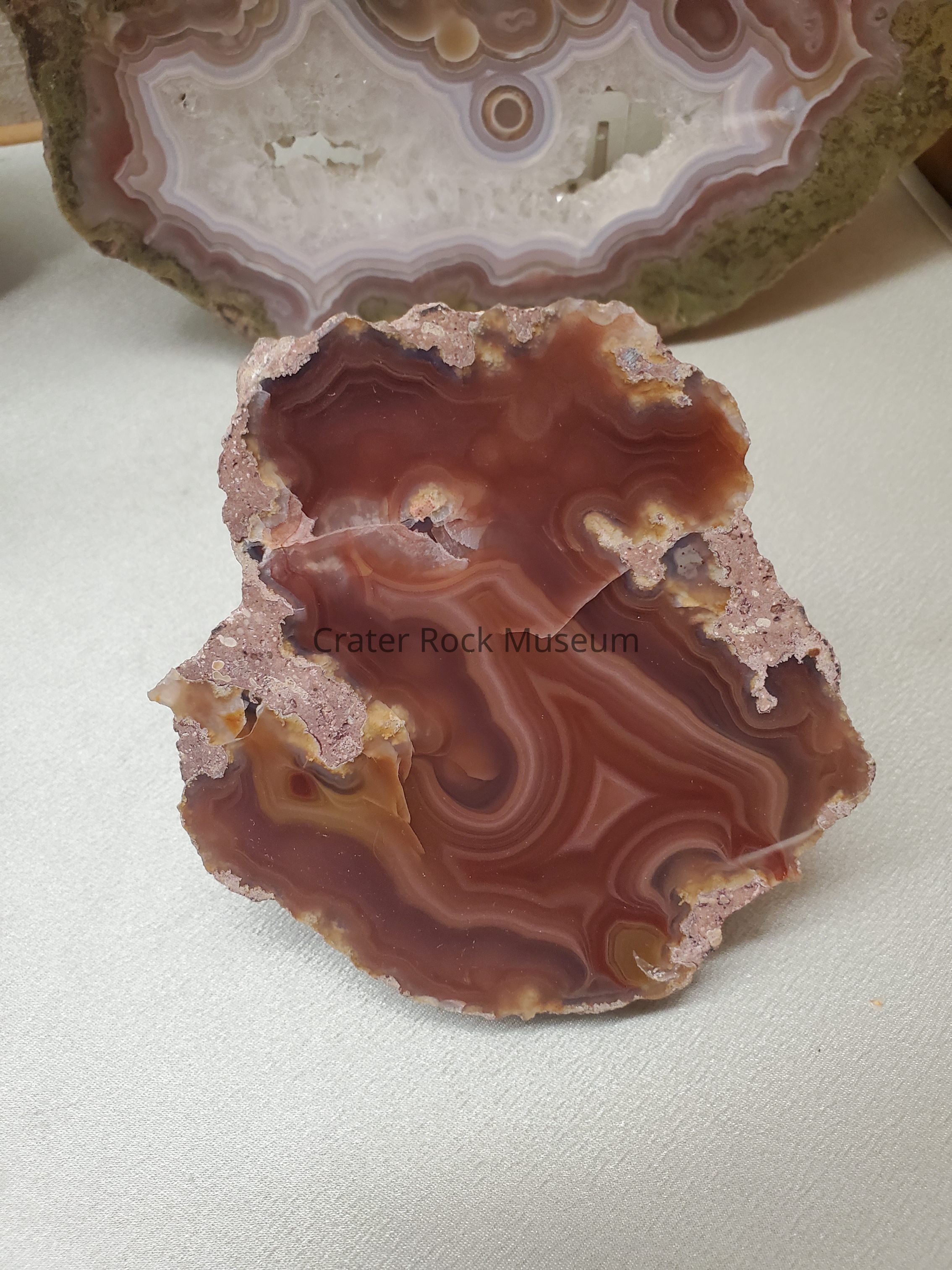 Agate ( /'æg?t/) is a microcrystalline variety of silica, chiefly chalcedony, characterised by its fineness of grain and brightness of color. Although agates may be found in various kinds of rock, they are classically associated with volcanic rocks and can be common in certain metamorphic rocks.