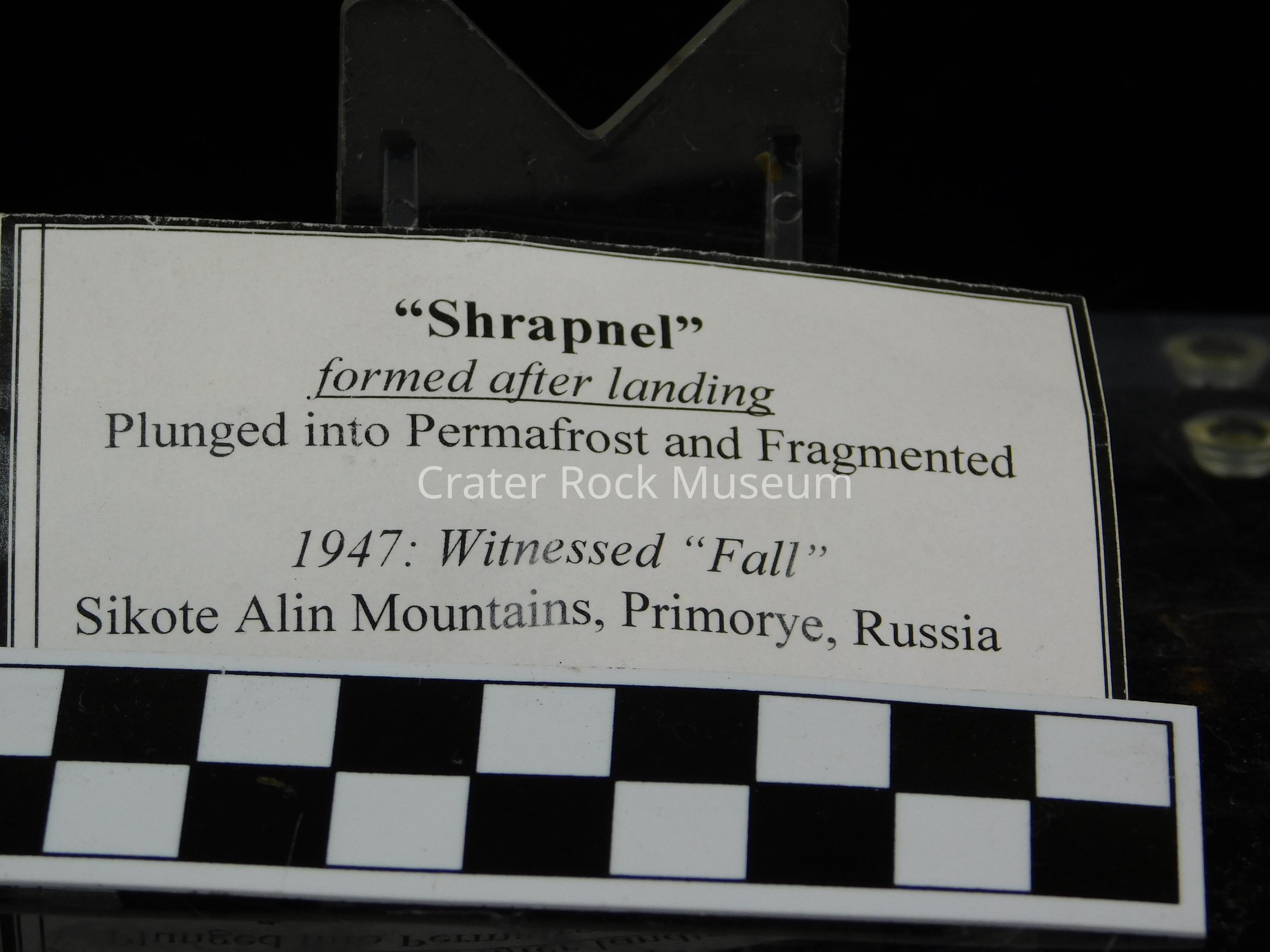Variety: Sikhote-Alin is an iron meteorite that fell in 1947 on the Sikhote-Alin Mountains in eastern Siberia. This fall is unique in the history of meteorites. Though large iron meteorite falls had been witnessed previously and fragments recovered, never before in recorded history had a fall of this magnitude been observed. An estimated 70 tonnes of material survived the fiery passage through the atmosphere and reached the Earth.Collection