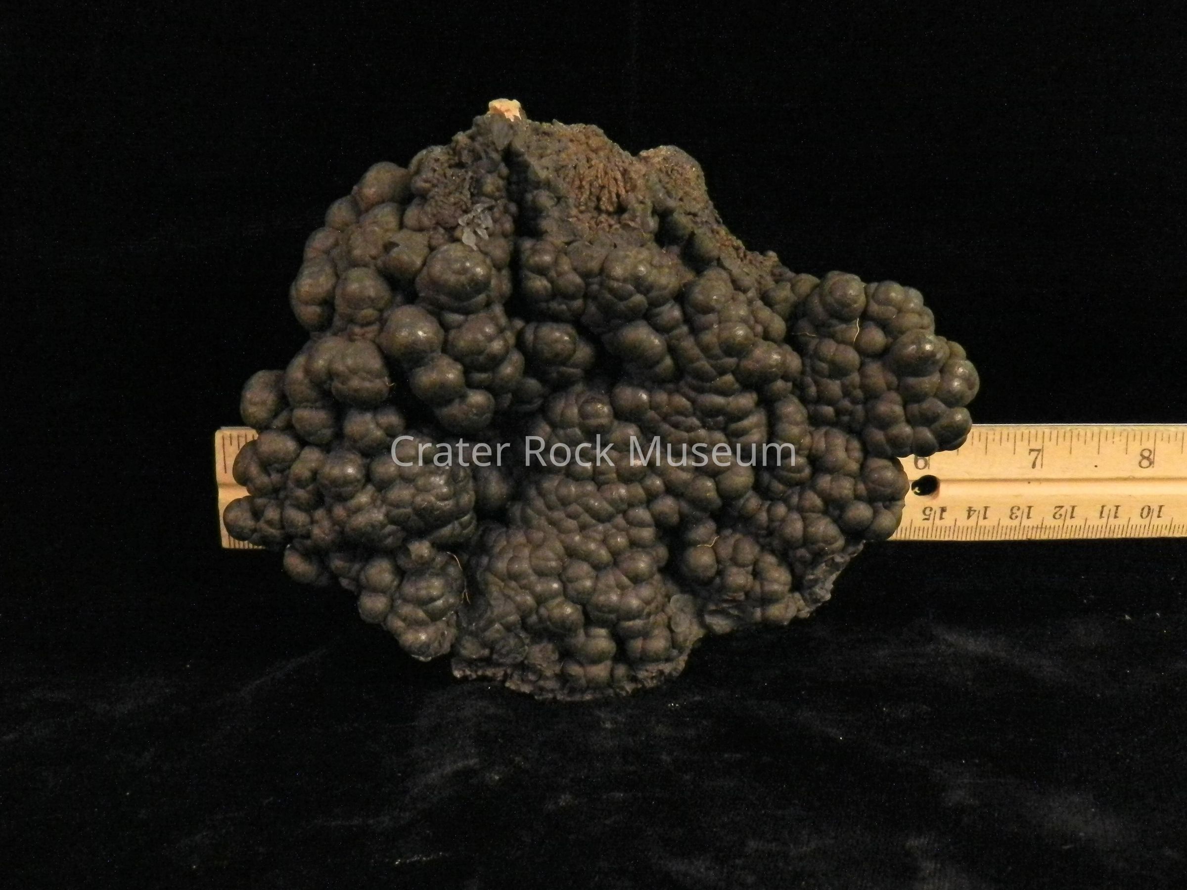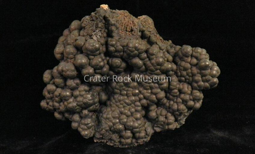 Description: Metallic colored, dark gray. Small spheres all bunched together in botryoidal form and giving the appearance of lumpy grape-like masses.