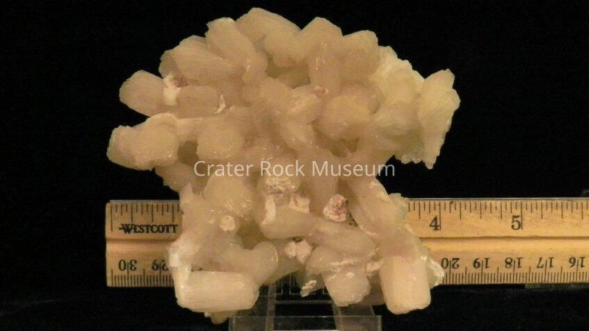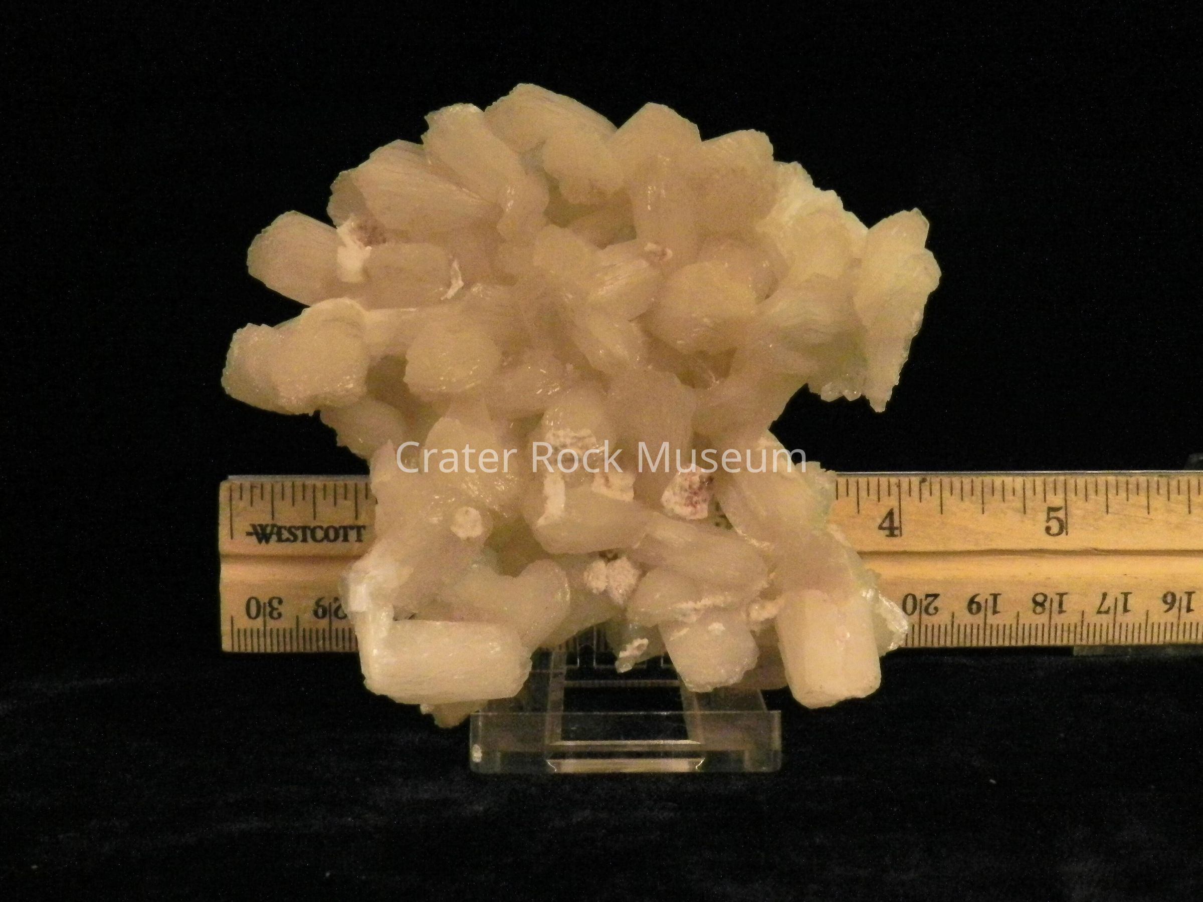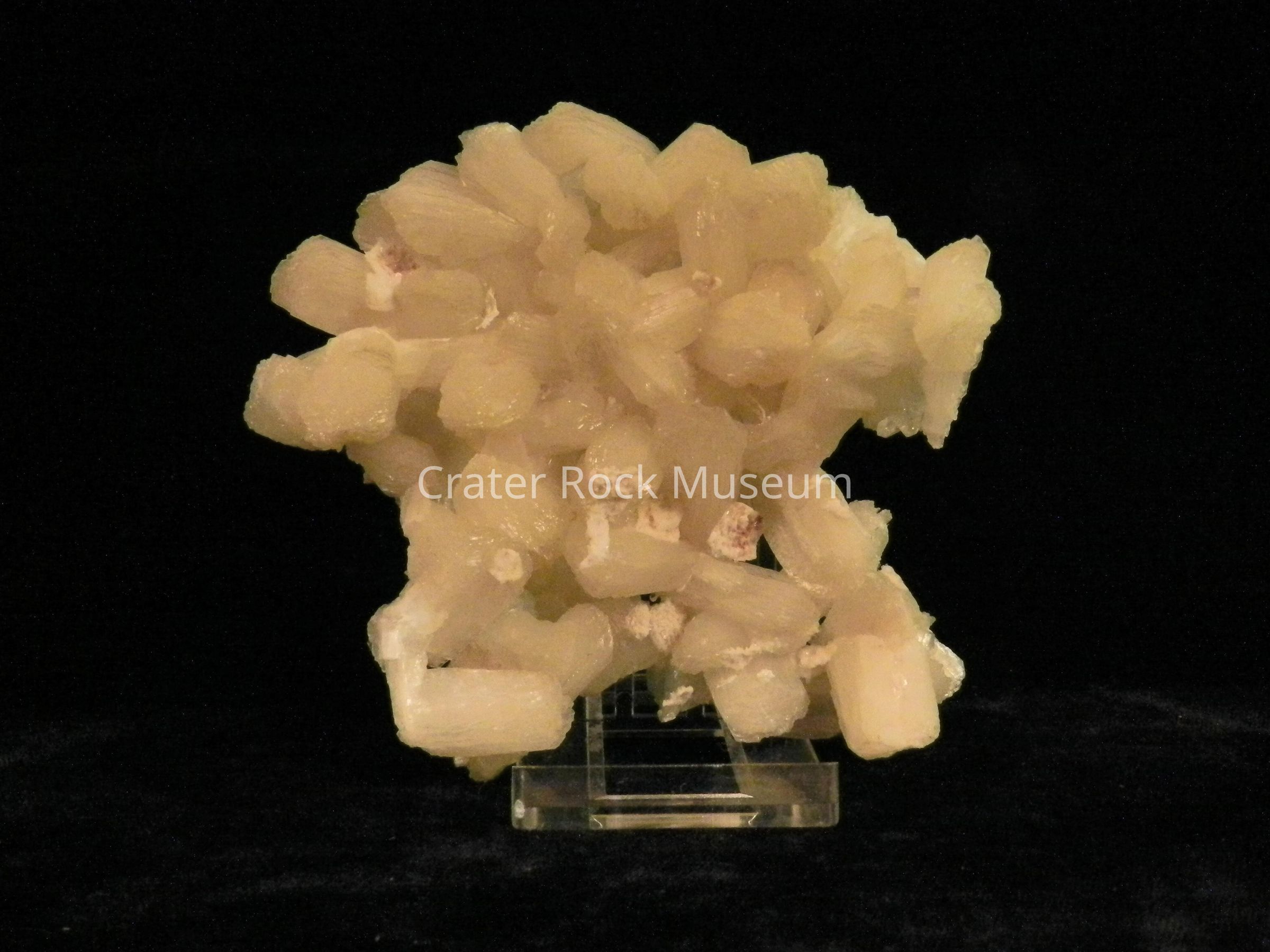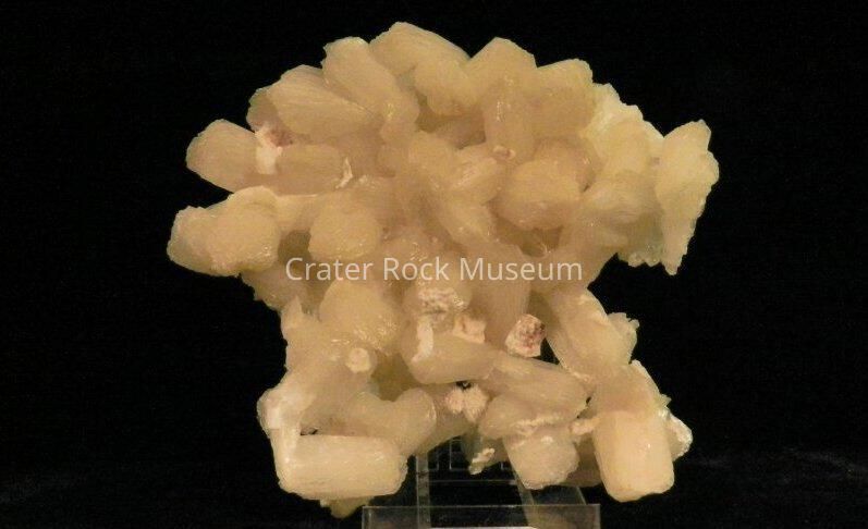 Occurrence: Stilbite crystals can aggregate together to form a structure resembling wheat sheafs. This hourglass structure looks like several crystals stacked parallel to each other with the tops and bottoms of this structure fanning out while the middle remains thin. Stilbite's hallmark crystal habit is unique to stilbite and a rarer but related zeolite called stellerite. Whether in the wheat sheafs or not, stilbite can be a hansome specimen with its pearly luster and often colorful pink tints. Stilbite commonly forms nice crystals inside the petrified bubbles (called vesicles) of volcanic rocks that have undergone a small amount of metamorphism