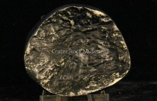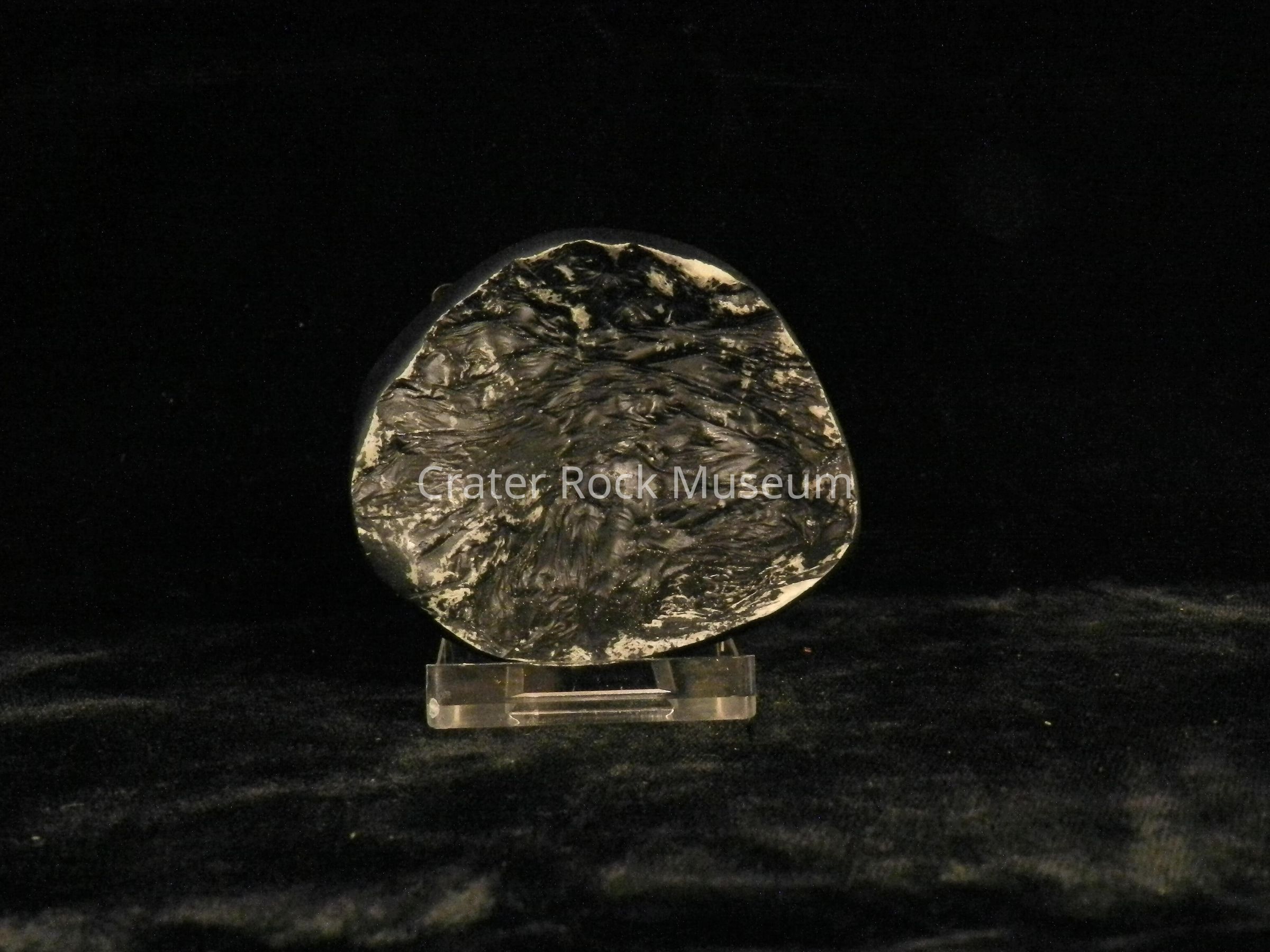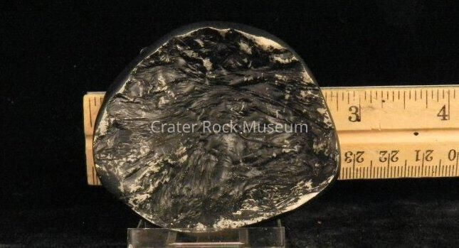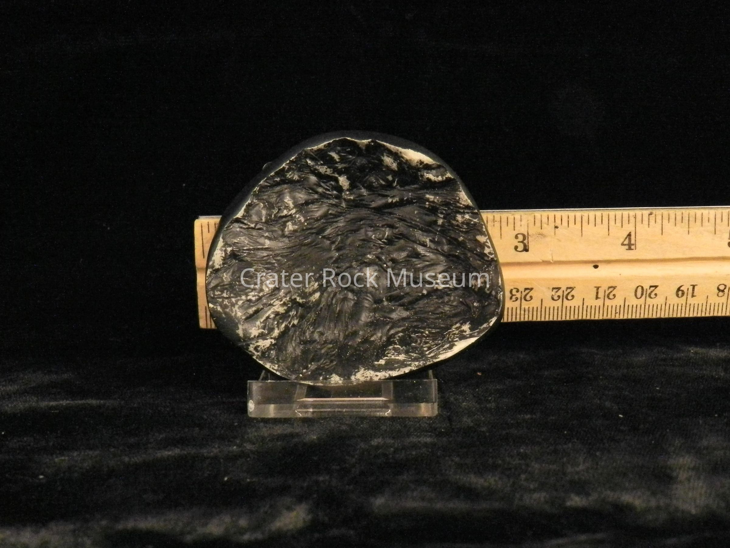 Description: Appears to be a round aluminum plug, with one end melted out as with blowtorch. Specimen seems to be painted in black all over.