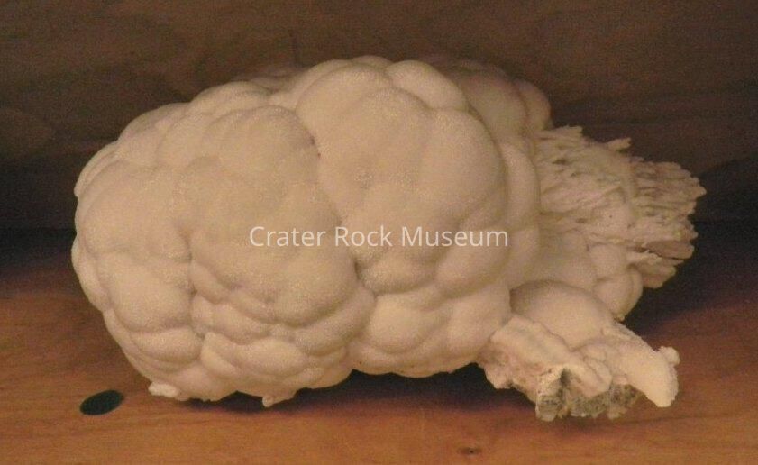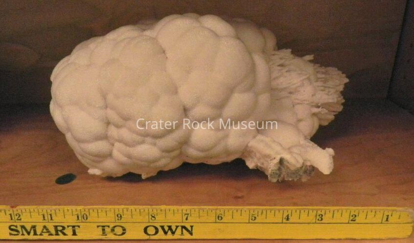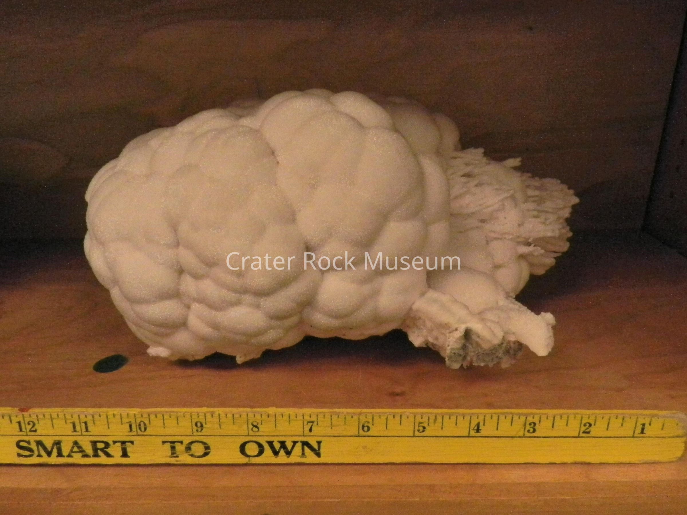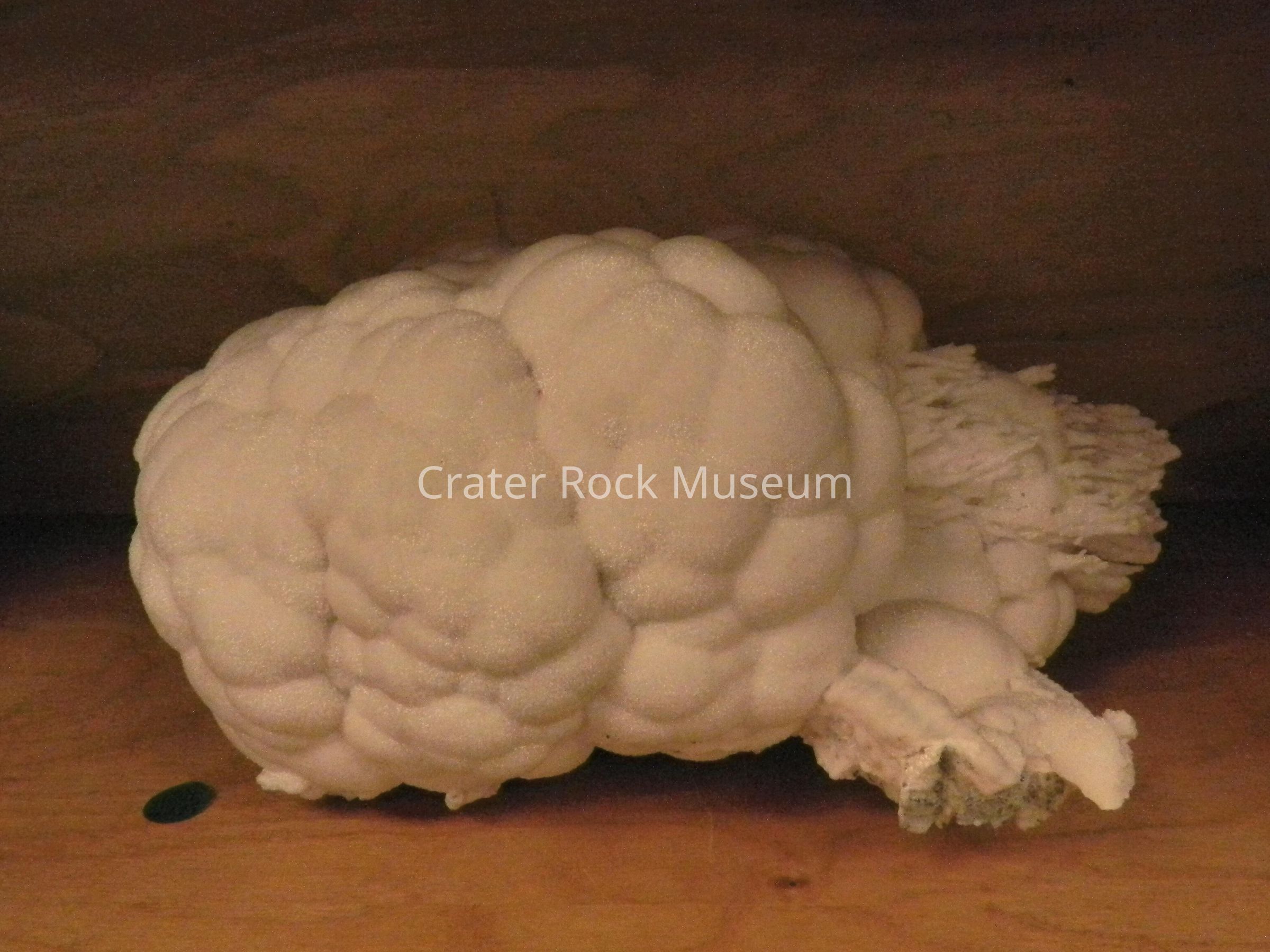 Description: Large, globular central mass, with botryoidal, druzy texture. A group of thick 'needles' coming mostly from one end. Dull white in color.Collection