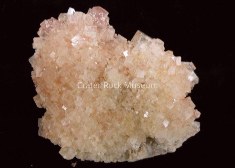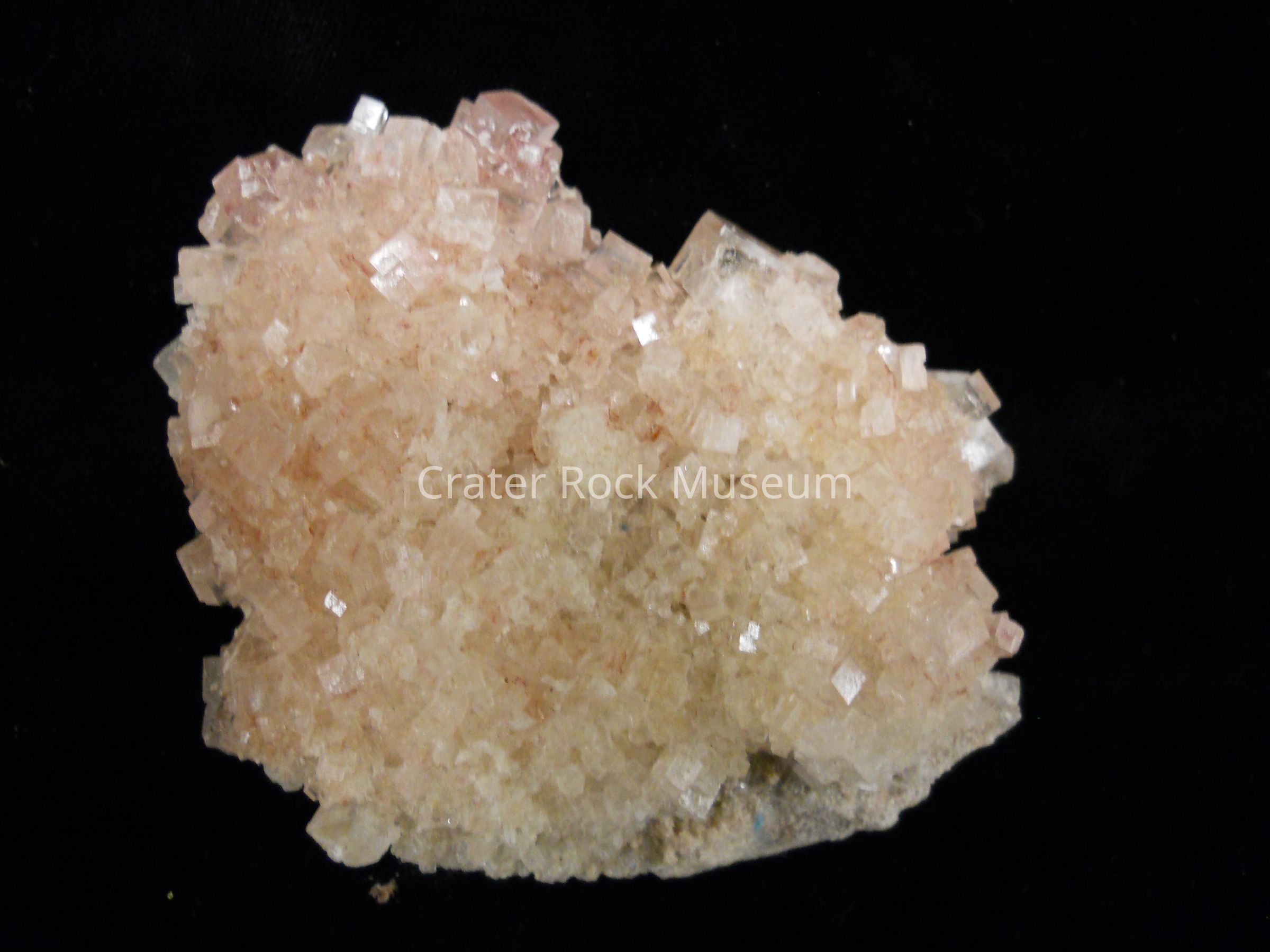 DESCRIPTION: Flattish array of small, light pink crystals grown on rock base.
