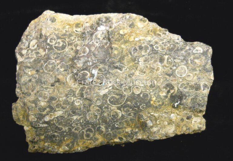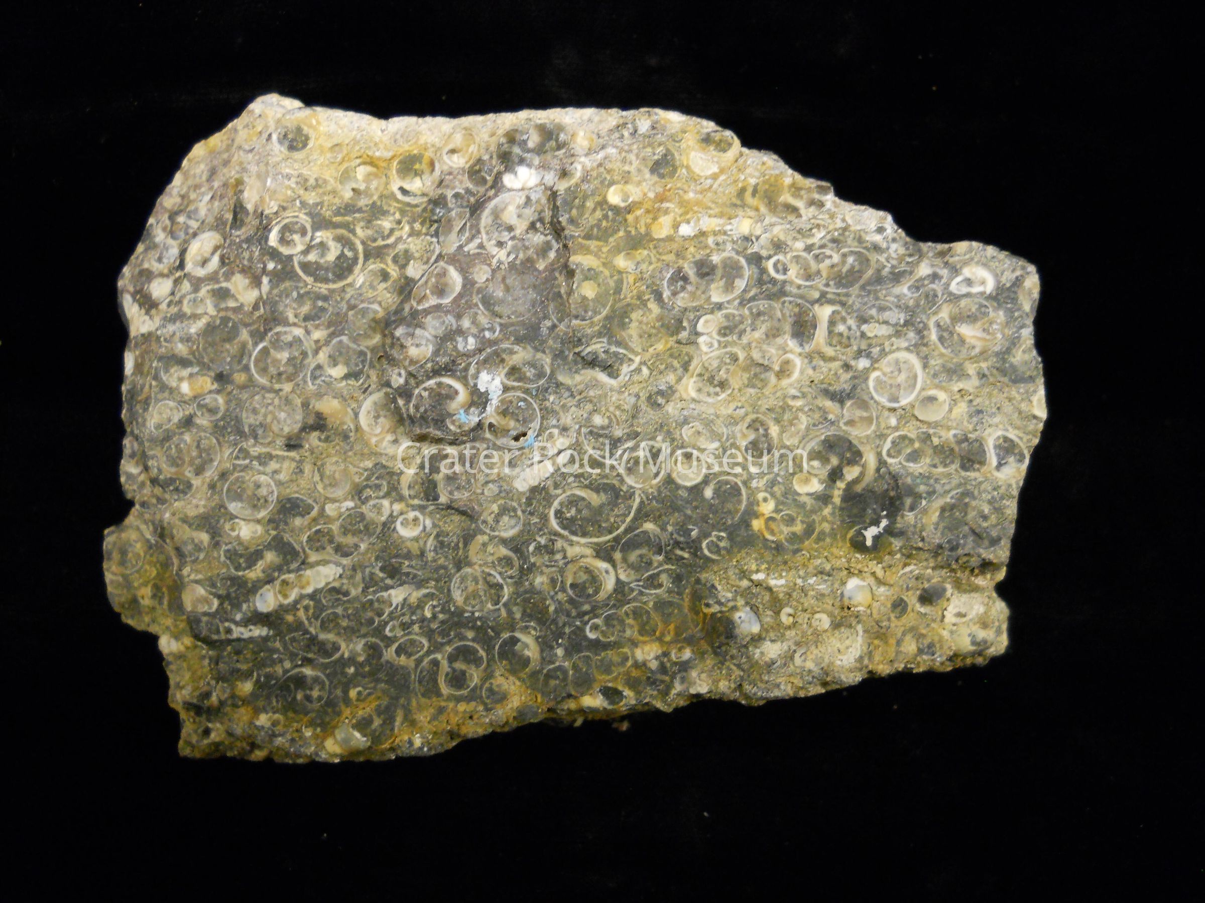 Description: White to light-gray conglomerate of fossiliferous limestone (tiny seashells in compacted base).