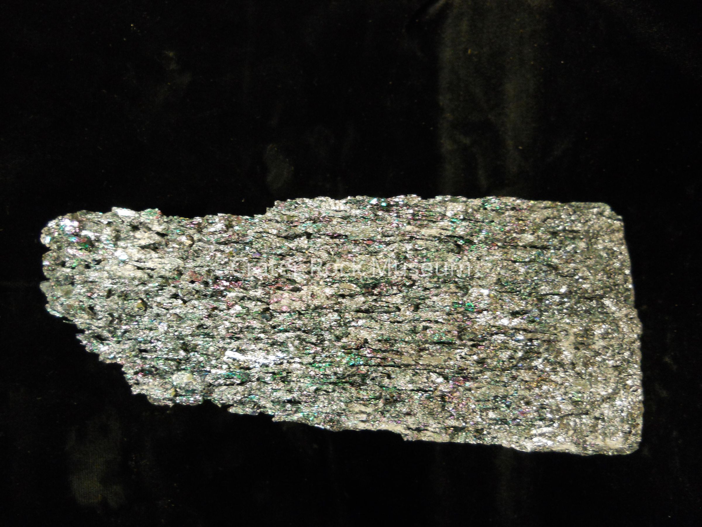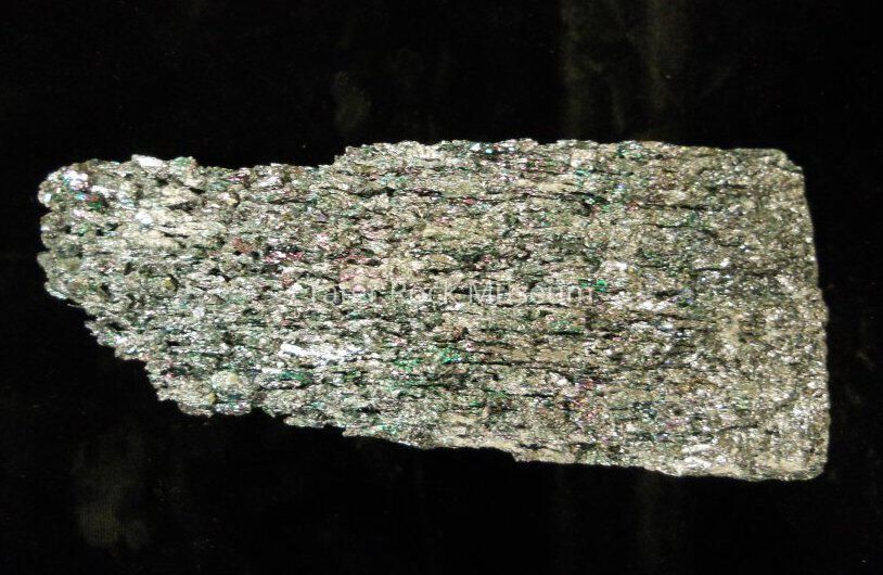 Description: A large, prickly piece of man-made 'Carborundum', a trade name. Colors: Bladed and long crystals in a deep green (almost black) with rainbow sheen. Used as a abrasive.