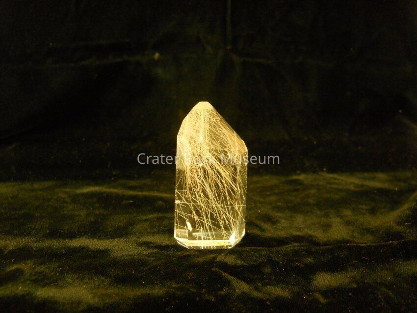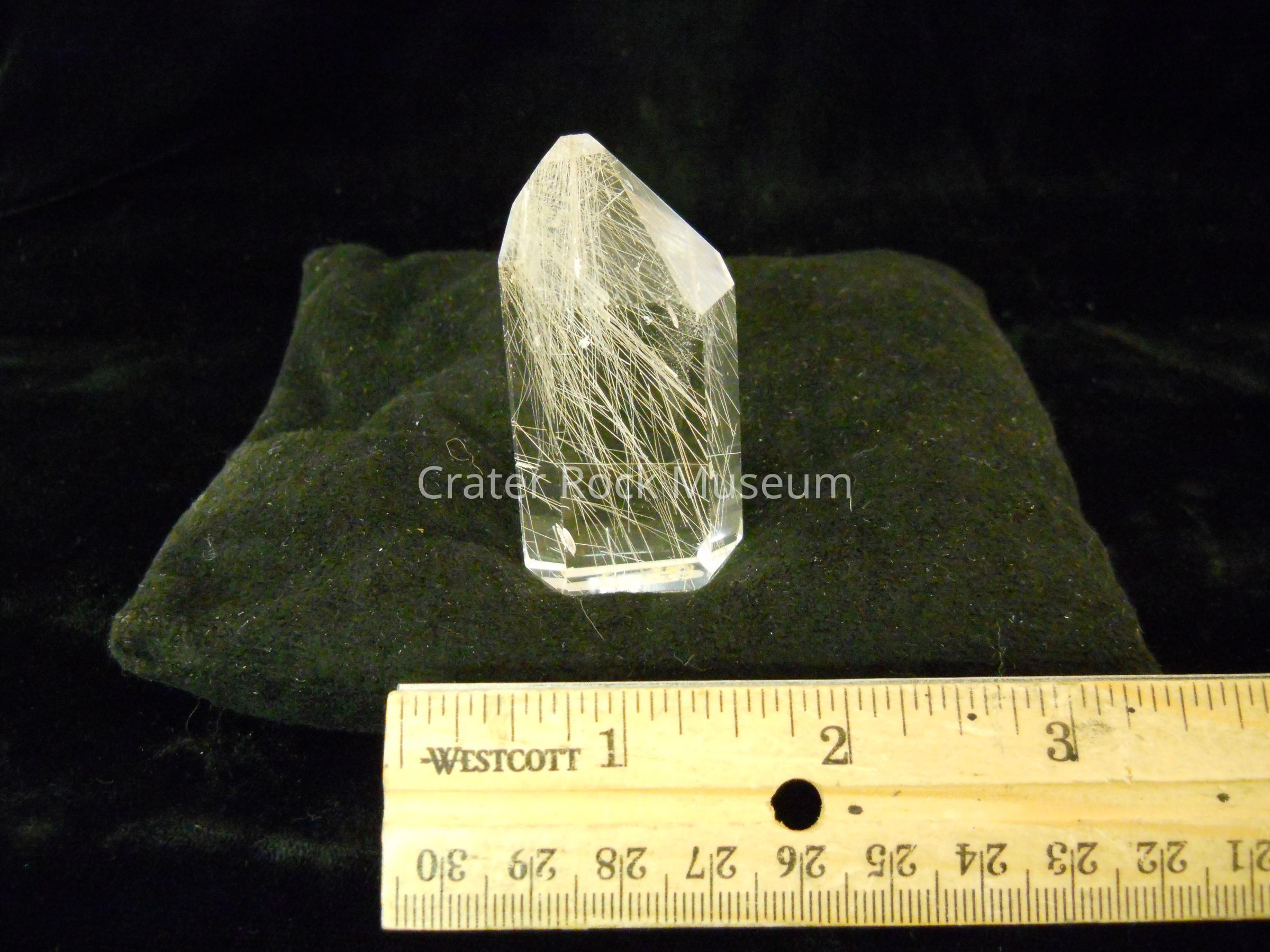 Description: This a transparent crystal with fine rutile hairlike structures throughout.