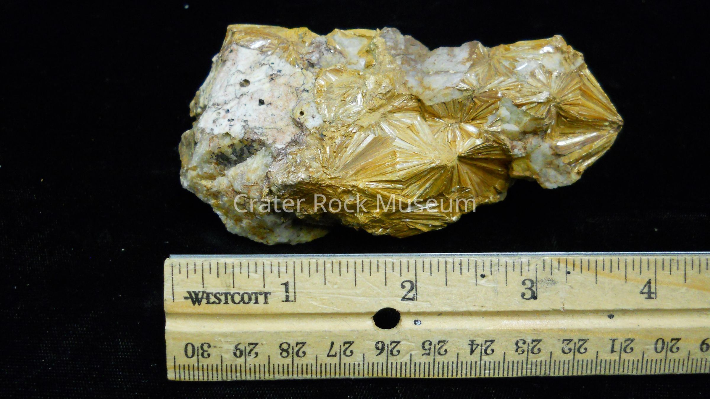• Crystal Habits include the typical fine grained, fibrous and lamellar masses, stellate aggregates and radiating spherules. Individual crystals are rare, but usually have a tabular subhedral or distorted form.