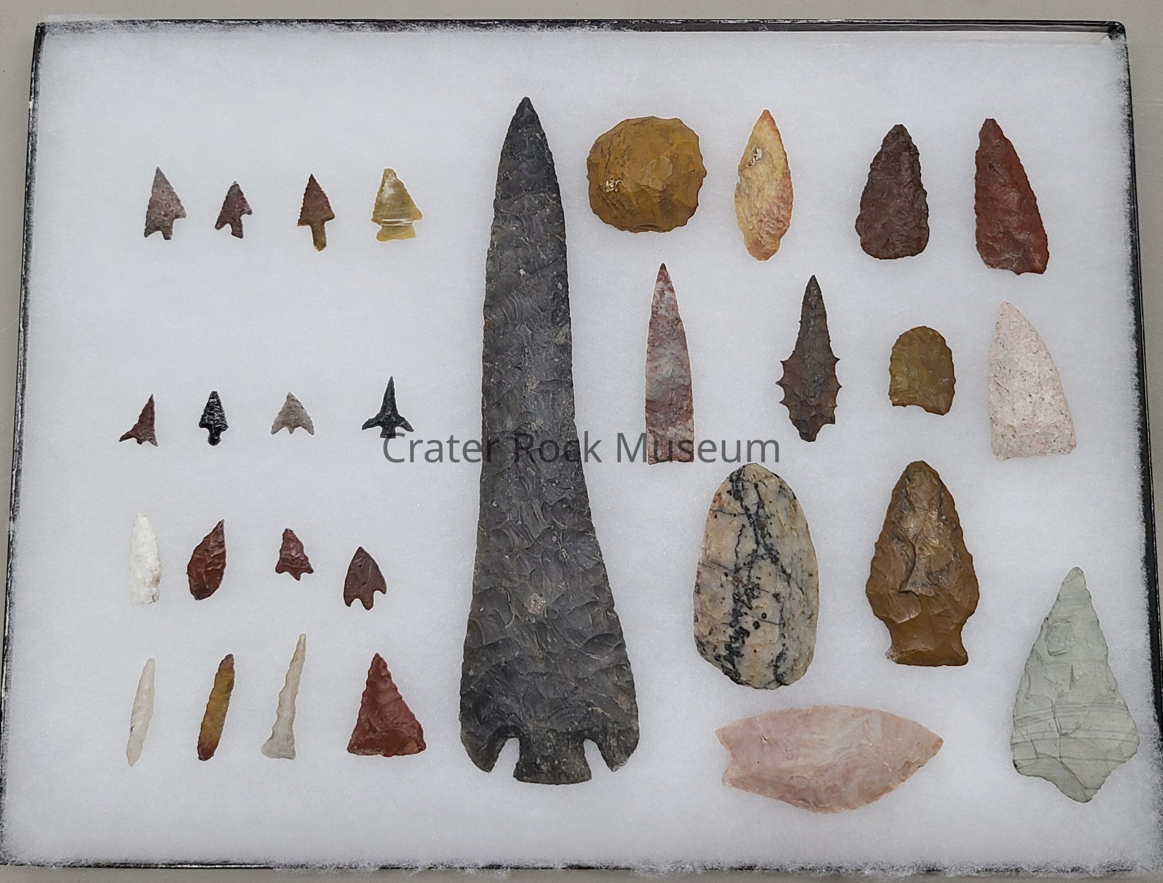 A Ryker with 28 projectile points and tools, many with 78.55 accession numbers noted below:
