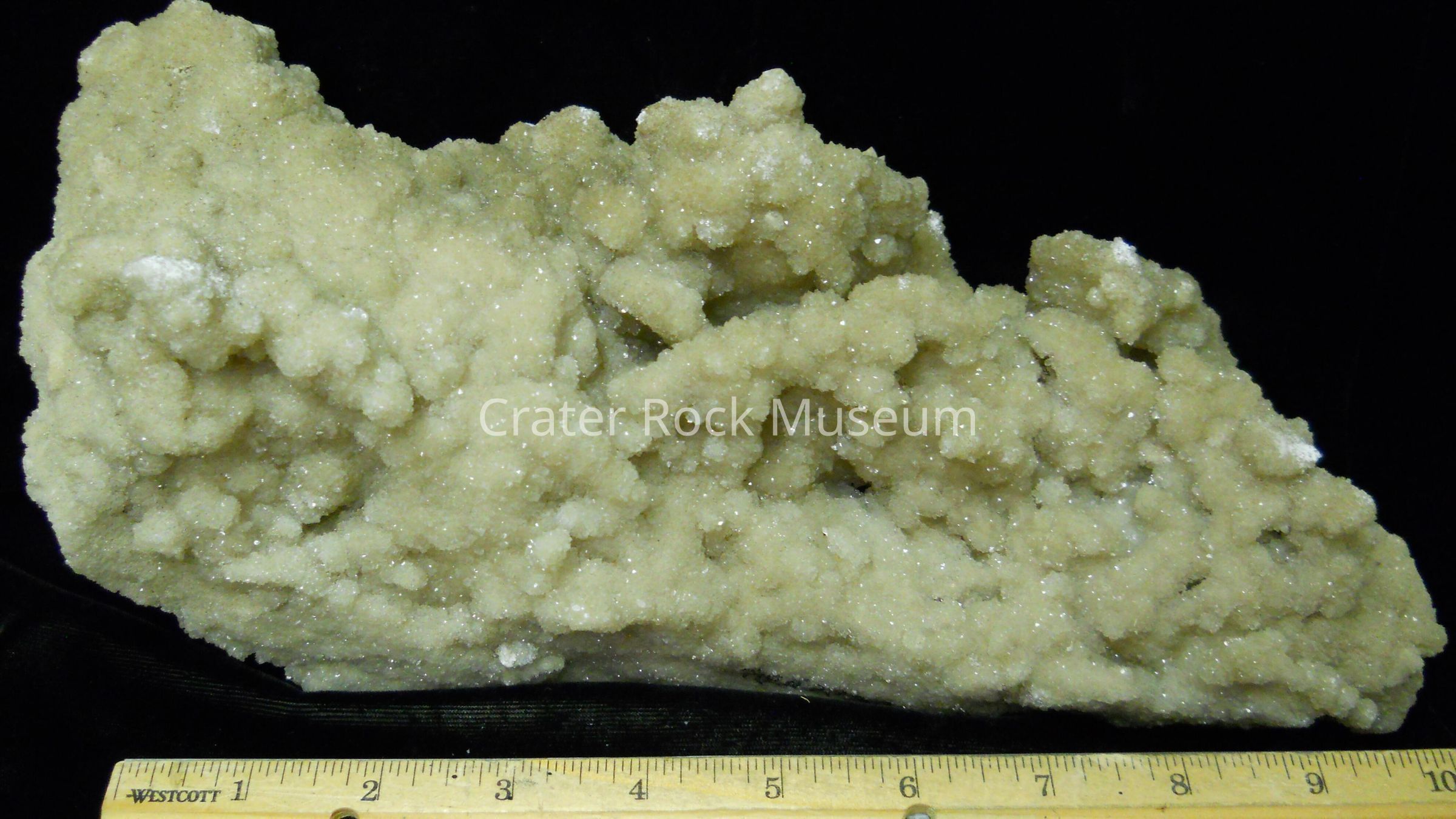 Description: A very irregular piece of Quartz crystals taken from inside a cave. The small size of the Quartz crystals as well as the light brown tan color lend the name "Drusy Quartz" to this