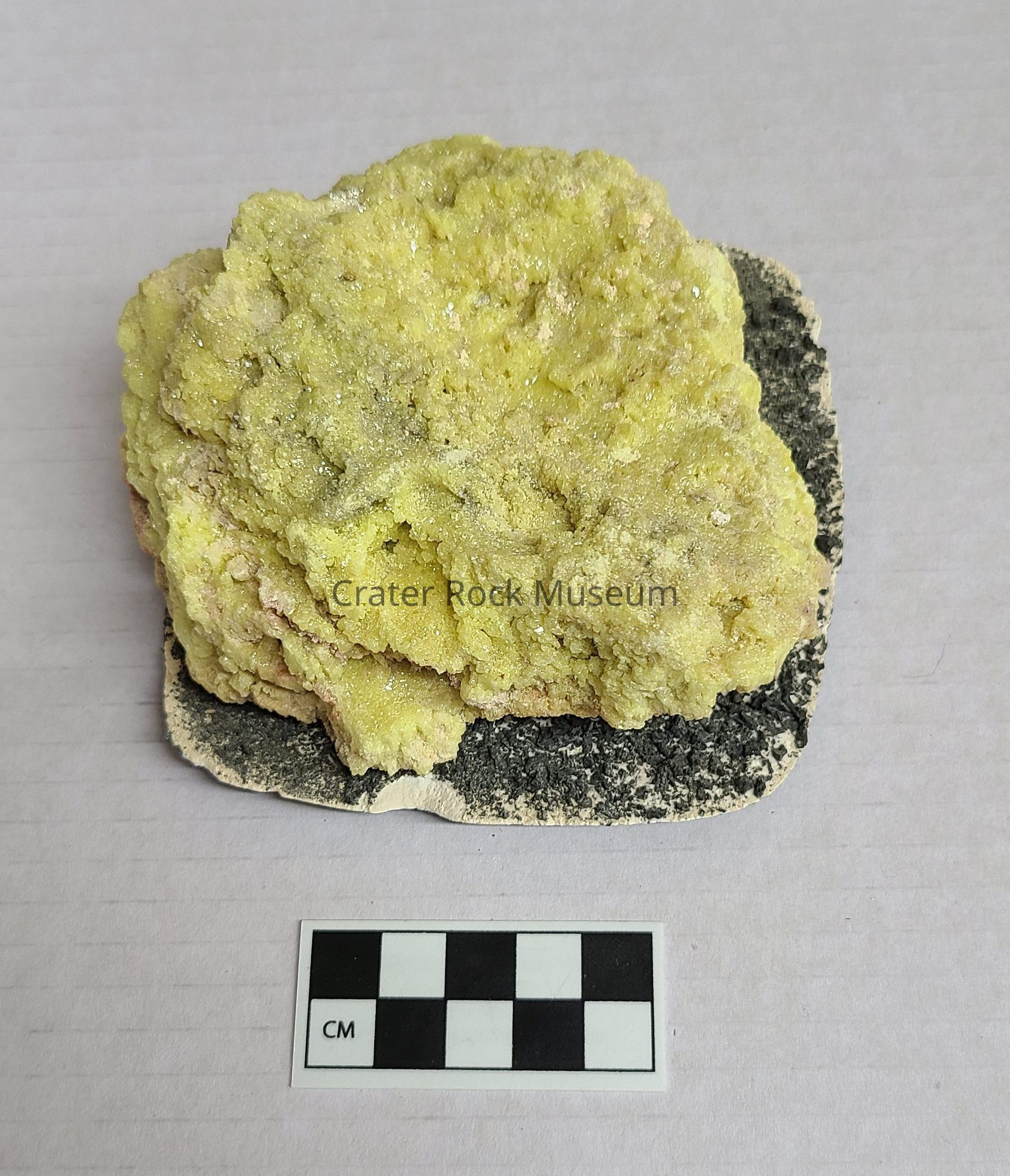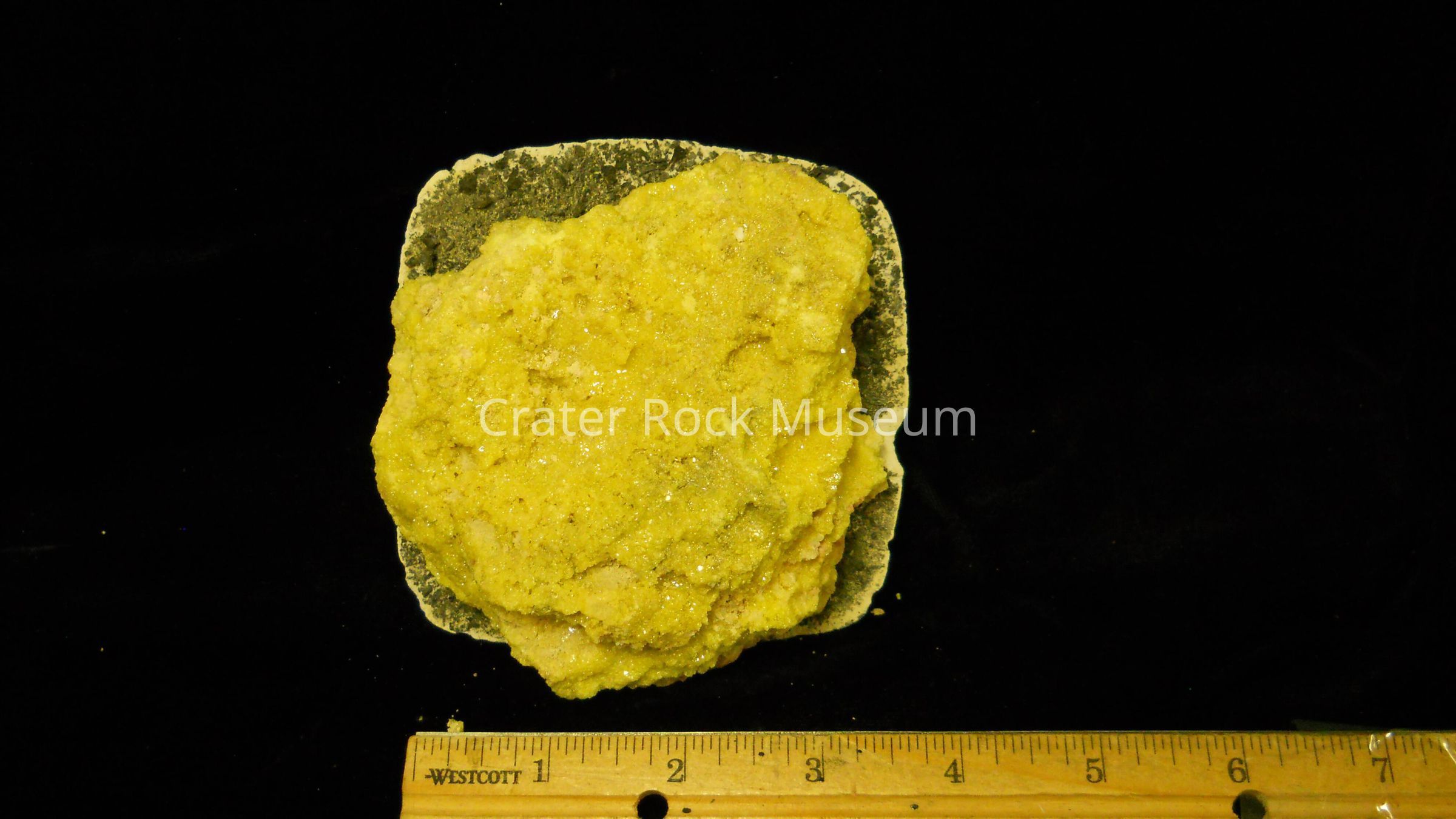 Color is a strong yellow color in thick crystals and duller yellow in small crystals to pale yellow in massive or powdery forms. Can also be reddish or greenish yellow with impurities.
