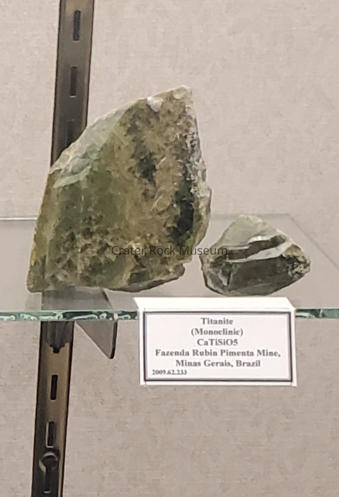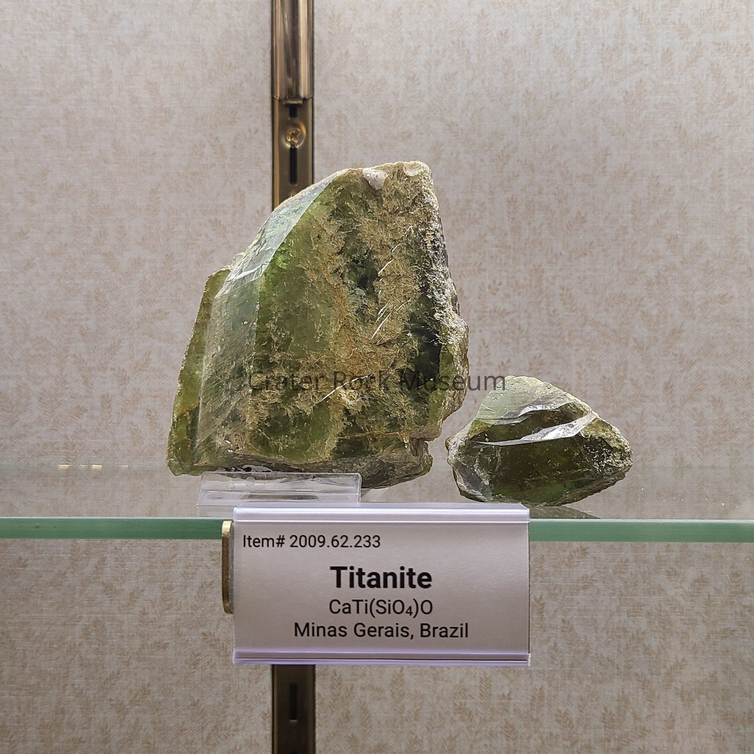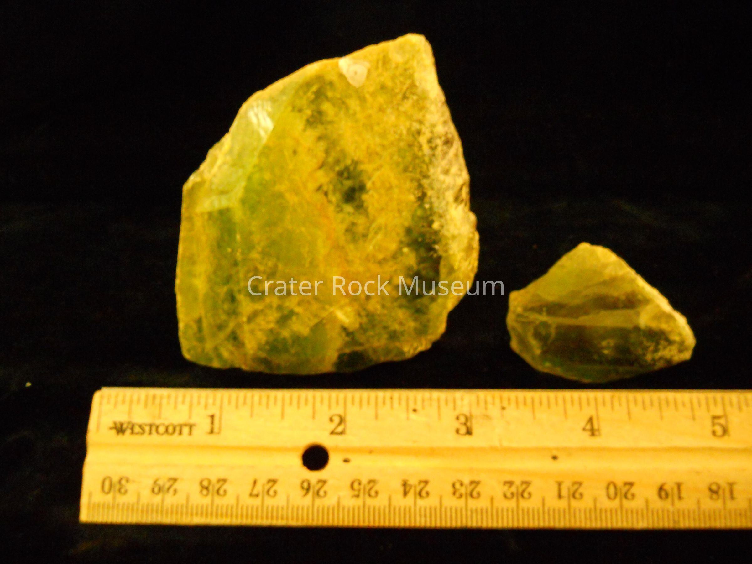 Description: There are two specimens. Both are green with yellowish coloring throughout.
