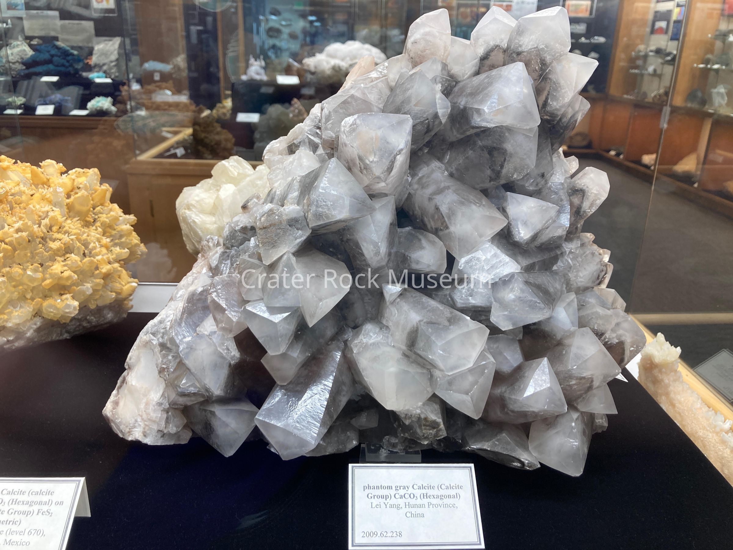 •Crystal Habits are extremely variable with almost any trigonal form possible. Common among calcite crystals are the scalenohedron, rhombohedron, hexagonal prism, and pinacoid. Combinations of these and over three hundred other forms can make a multitude of crystal shapes, but always trigonal or pseudo-hexagonal. Twinning is often seen and results in crystals with blocky chevrons, right angled prisms, heart shapes or dipyramidal shapes. A notch in the middle of a doubly terminated scalenohedron is a sure sign of a twinned crystal. lamellar twinning also seen resulting in striated cleavage surfaces. Pseudomorphs after many minerals are known, but easily identified as calcite. Also massive, fibrous, concretionary, stalactitic, nodular, oolitic, stellate, dendritic, granular, layered, etc. etc.