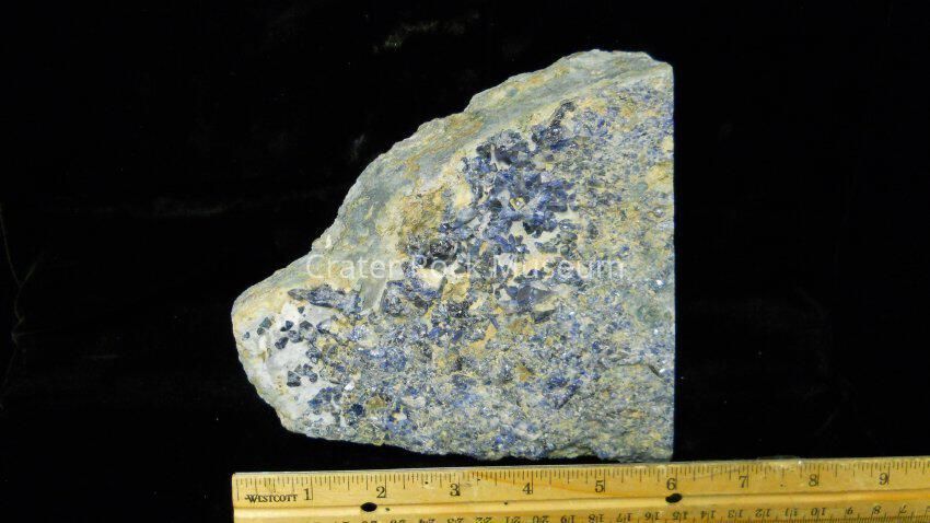 The other larger surface has been acid etched to show the sapphire blue crystals.