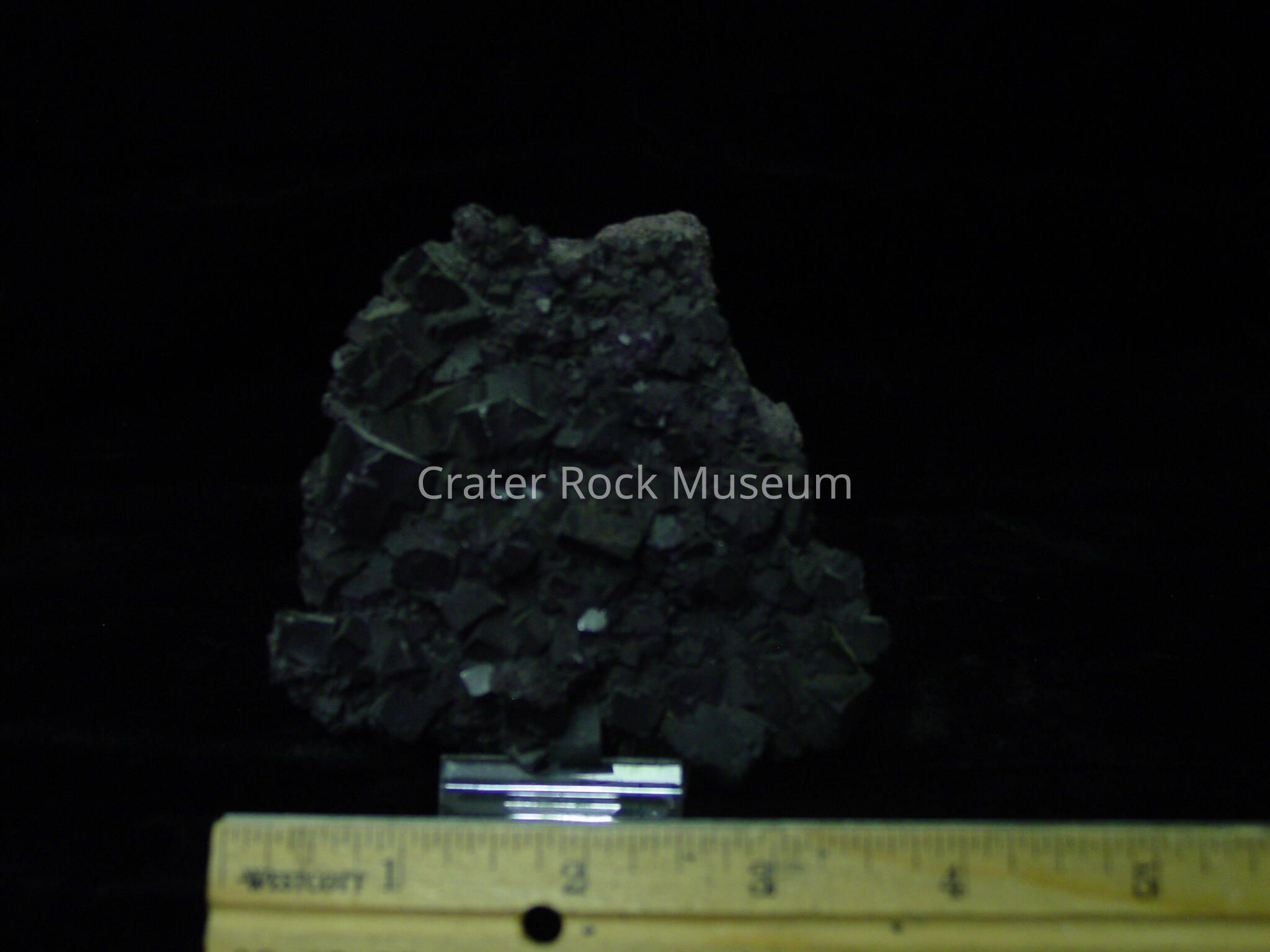Description: Dark purple crystals in semi-planar formation. Crystals from 1/2" to microscopic
