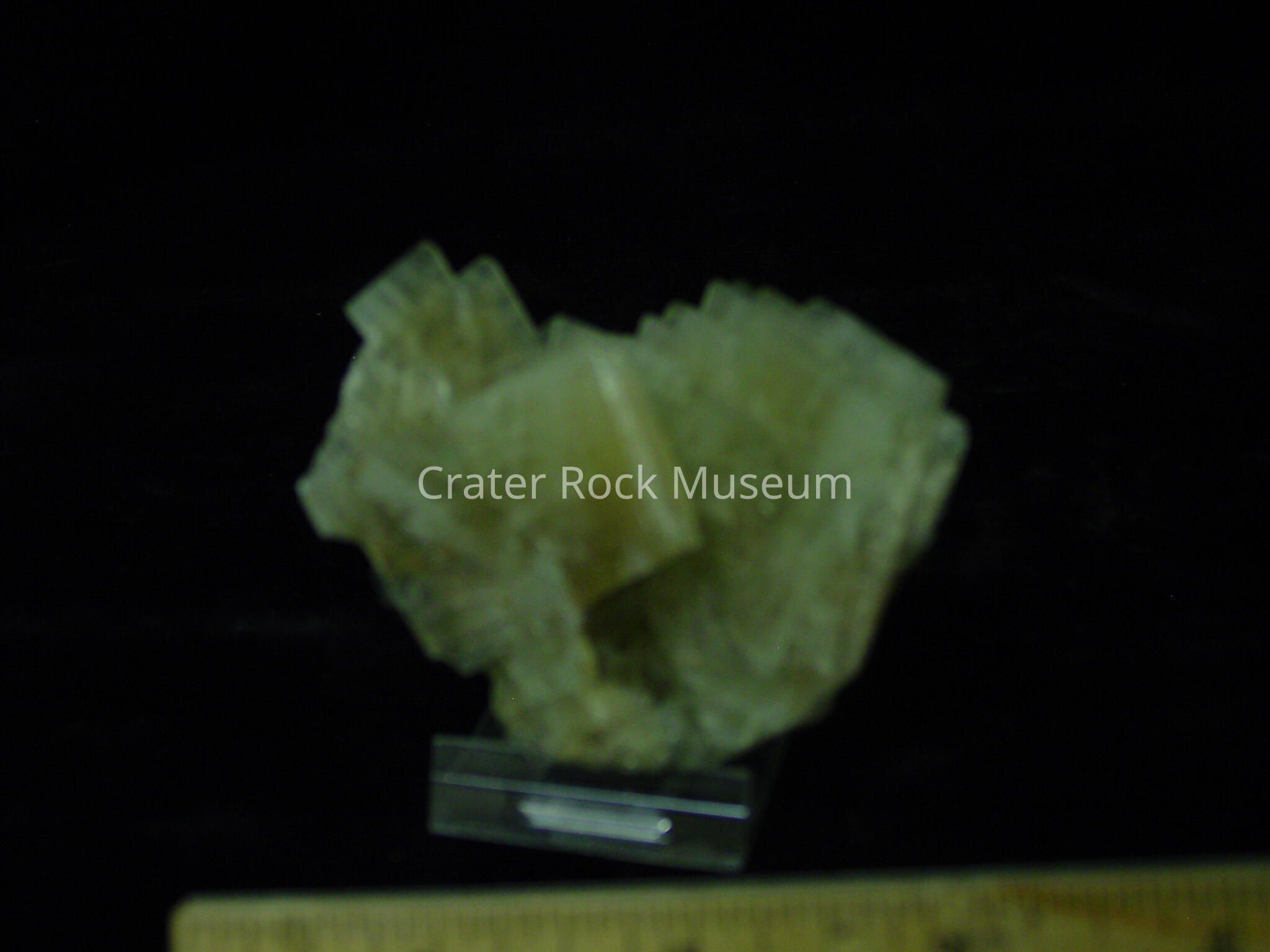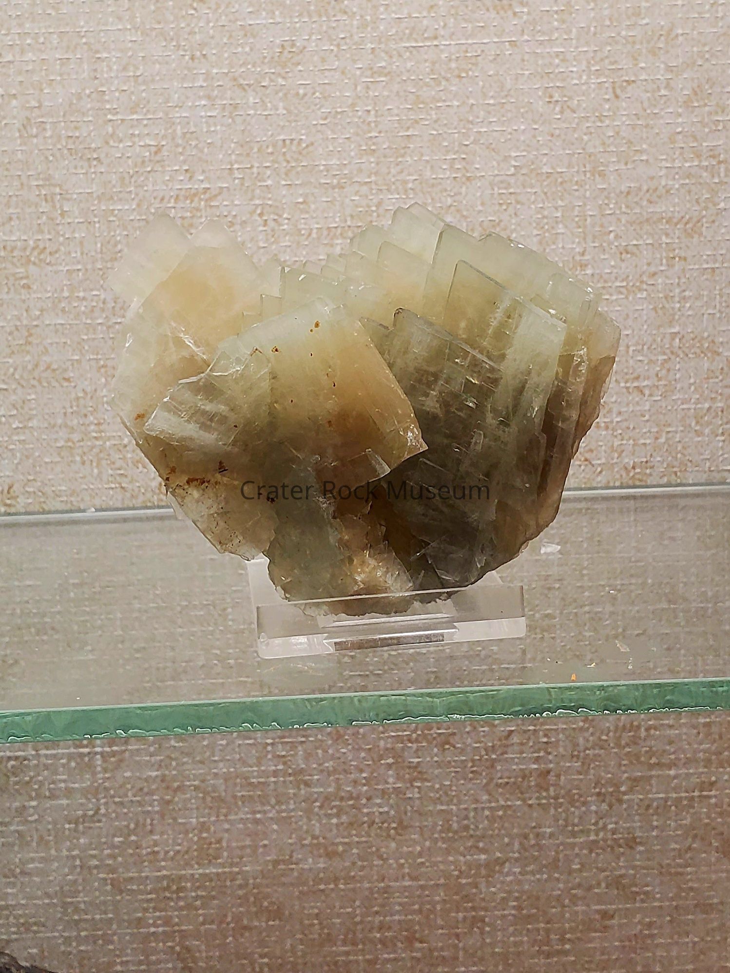Variety: Barite is a common mineral and makes very attractive specimens. It often is an accessory mineral to other minerals and can make a nice backdrop to brightly colored crystals. At times bladed or tabular crystals of Barite form a concentric pattern of increasingly larger crystals outward. This has the appearance of a flower and when colored red by iron stains, these formations are called "Desert Roses". Because Barite is so common, it can be confused for other minerals. Celestite (SrSO4) has the same structure as barite and forms very similar crystals. The two are indistinguishable by ordinary methods, but a flame test can distinguish them. By scrapping the dust of the crystals into a gas flame the color of the flame will confirm the identity of the crystal. If the flame is a pale green it is barite, but if the flame is red it is celestite. The flame test works because the elements barium (Ba) and strontium (Sr) react in the flame and produce those colors. .Collection