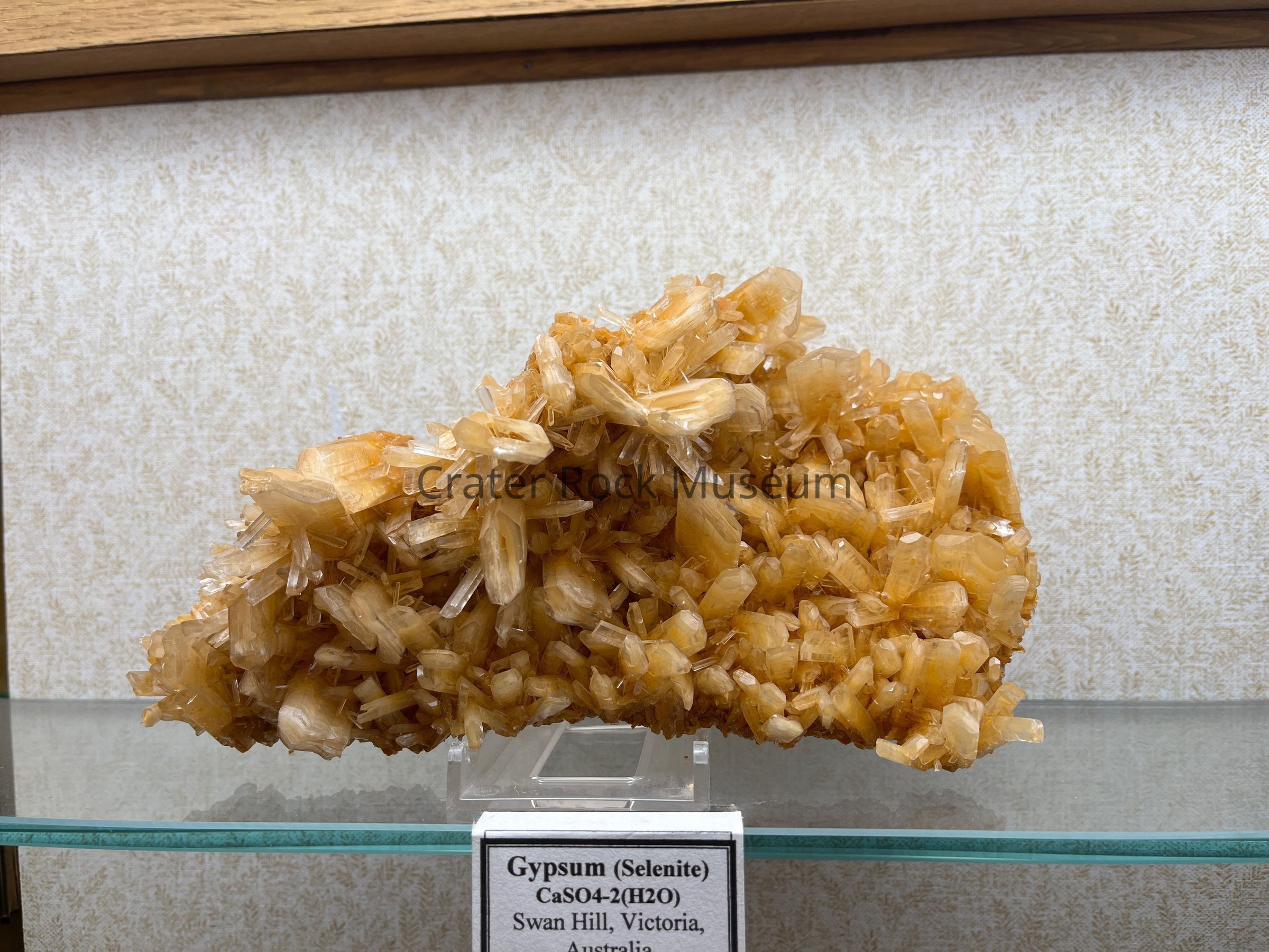 Description: An angular piece of Selenite with various sized tabular crystals. Crystals are honey colored to clear.Collection