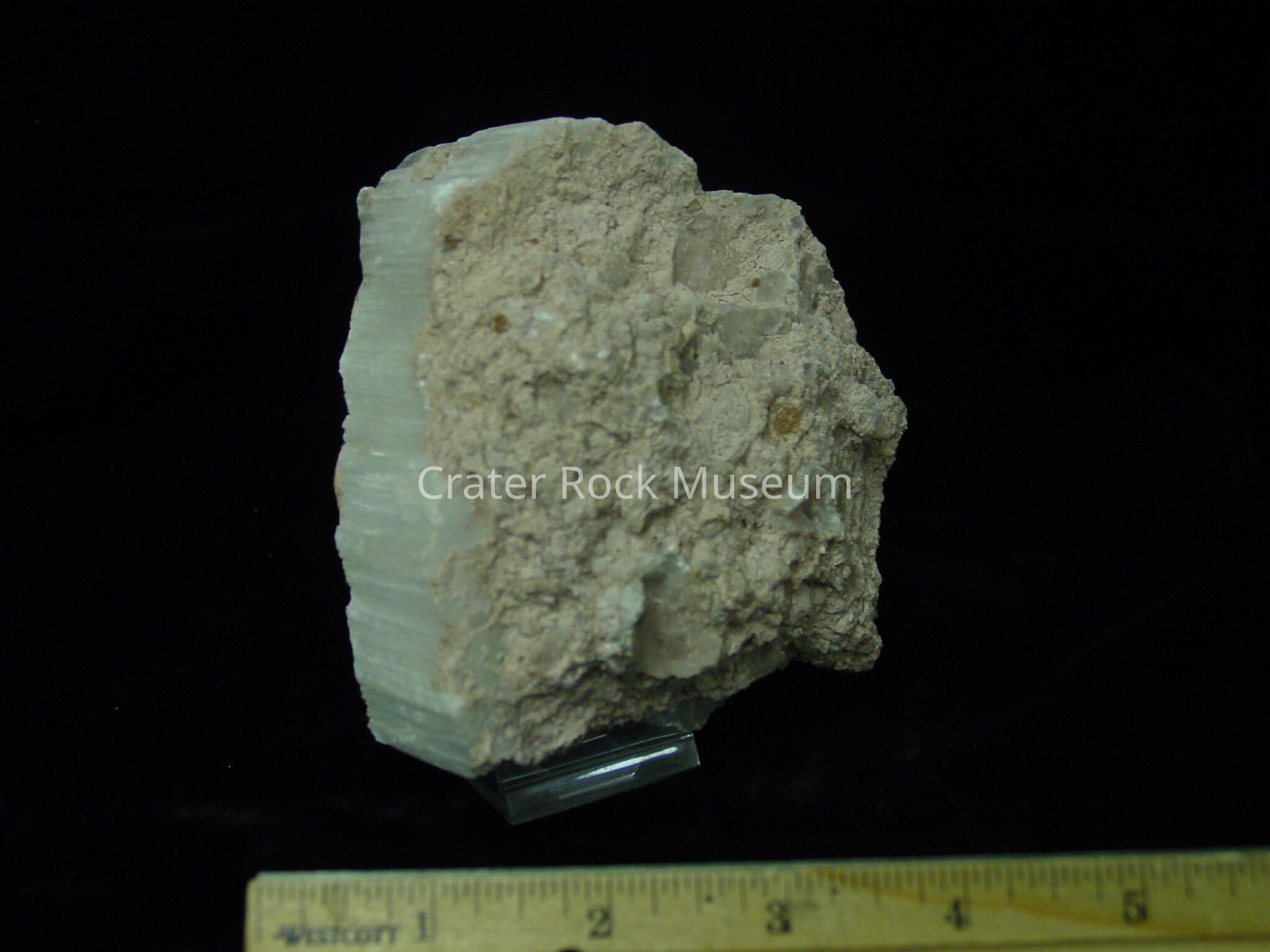 Occurrence: Gypsum is a common mineral, with thick and extensive evaporite beds in association with sedimentary rocks. Deposits are known to occur in strata from as early as the Permian age.[5] Gypsum is deposited in lake and sea water, as well as in hot springs, from volcanic vapors, and sulfate solutions in veins. Hydrothermal anhydrite in veins is commonly hydrated to gypsum by groundwater in near surface exposures. It is often associated with the minerals halite and sulfur