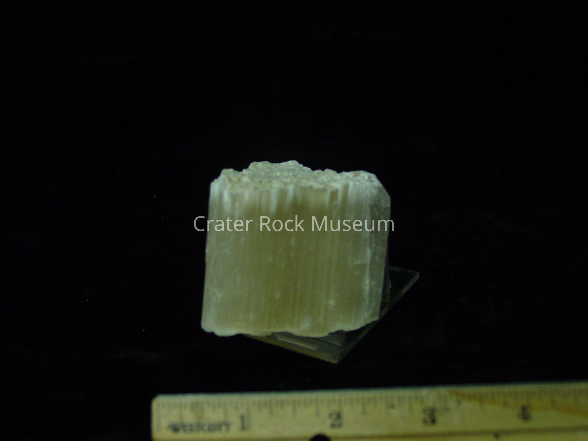 Another variety is a compact fiberous aggregate called "satin spar" . This variety has a very satin like look that gives a play of light up and down the fiberous crystals.