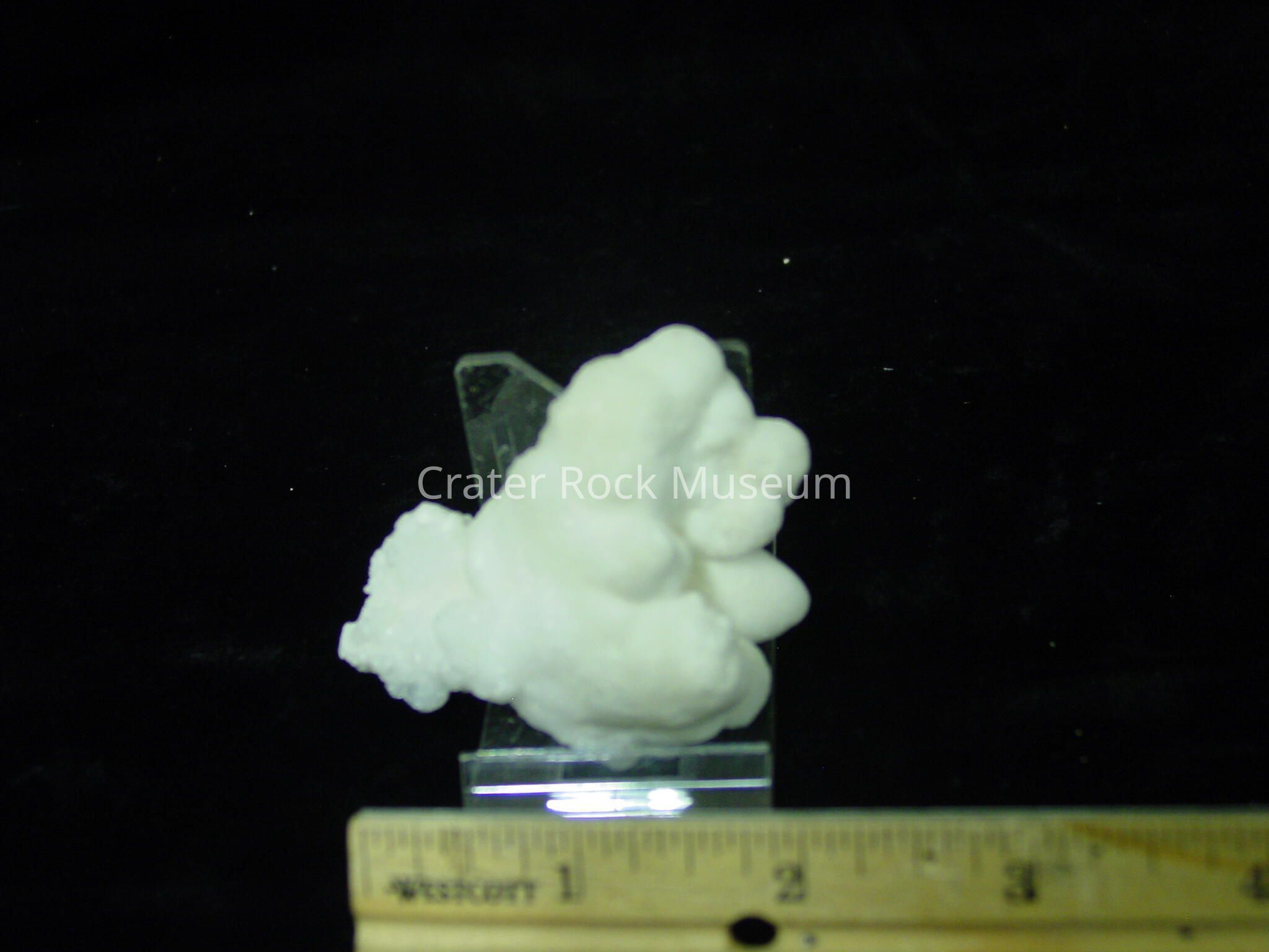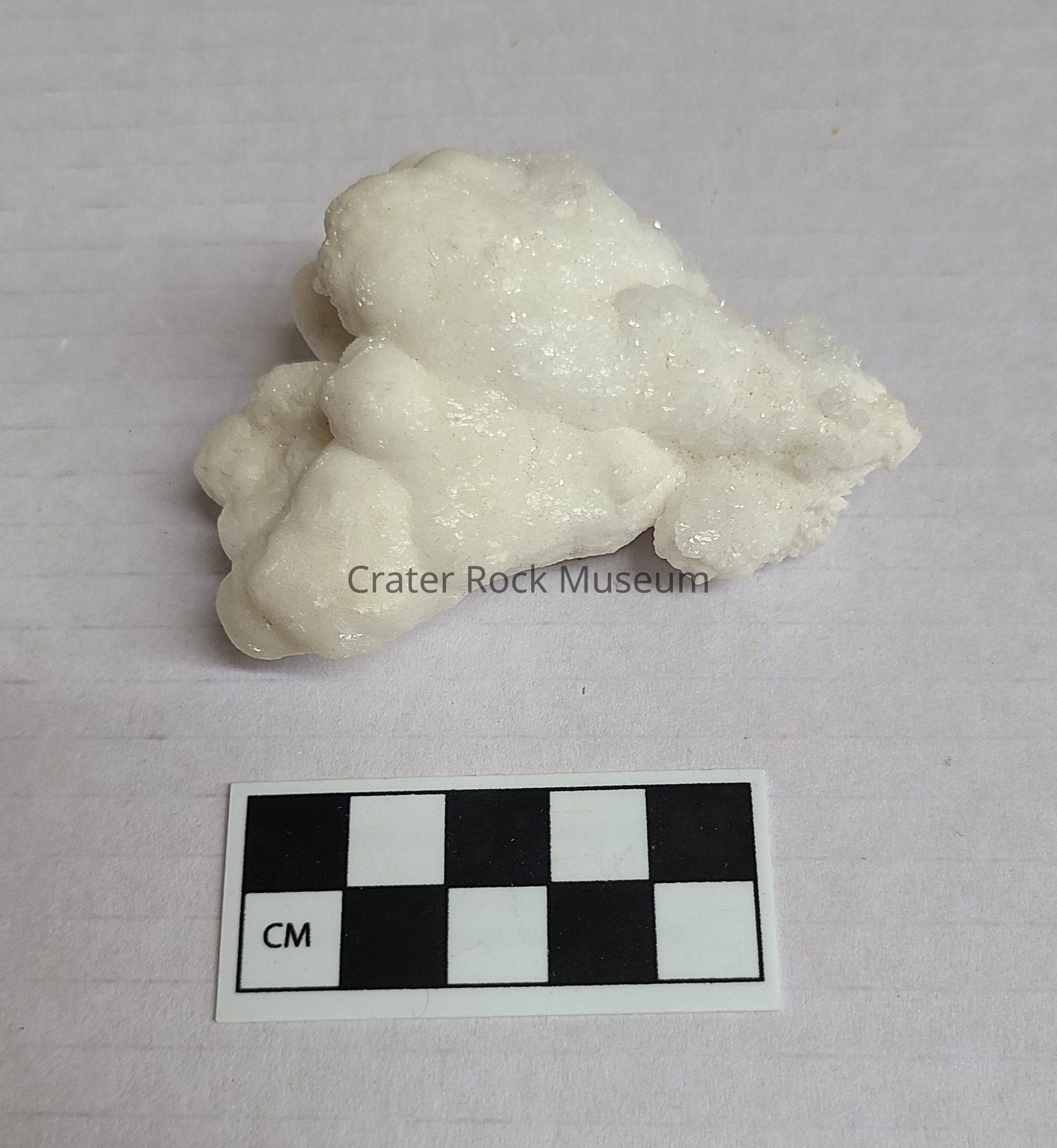 Description: A triangular piece of drusy coated calcite with five nodules. Color is a milky to opaque white.