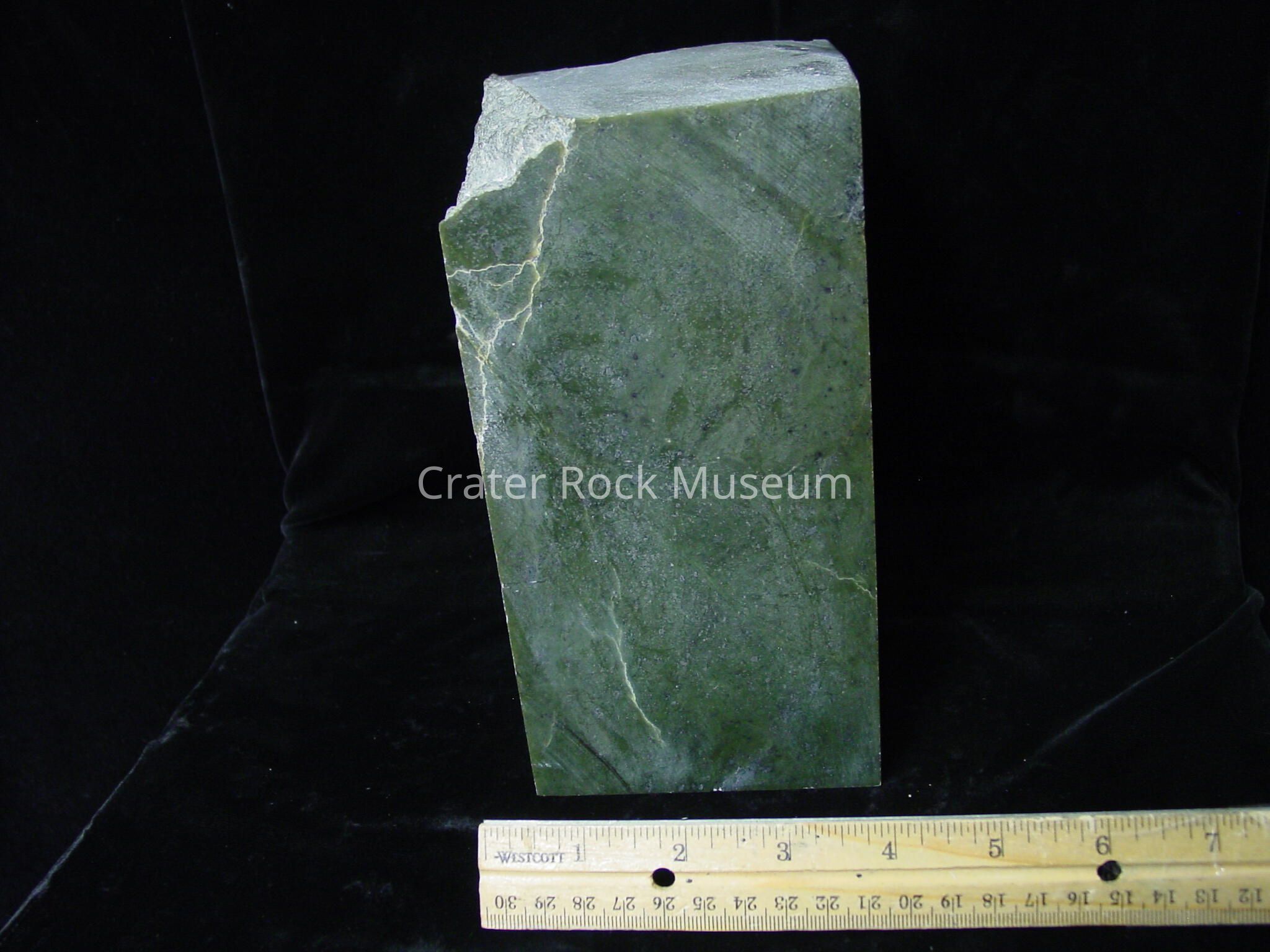Description: A piece of green Jade from Burma obtained during WWII. Colors are deep and light green and some black. Exterior is smooth and light tan.