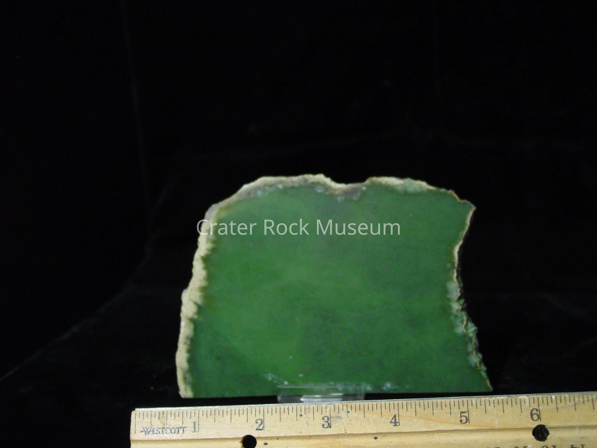 Description : A thin slab of Nephrite Jade with one polished surface. Light green with a cream colored band around it.
