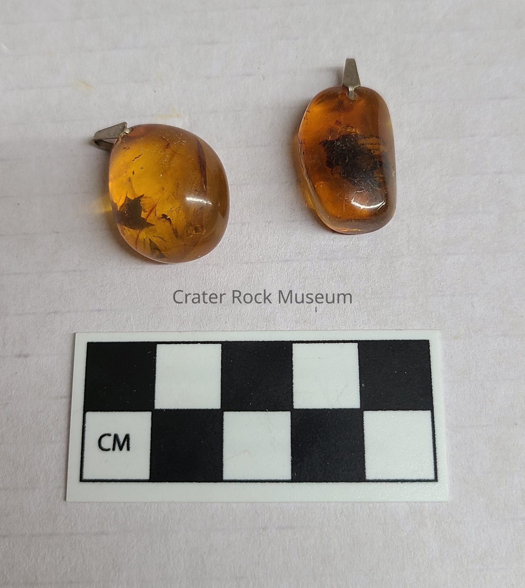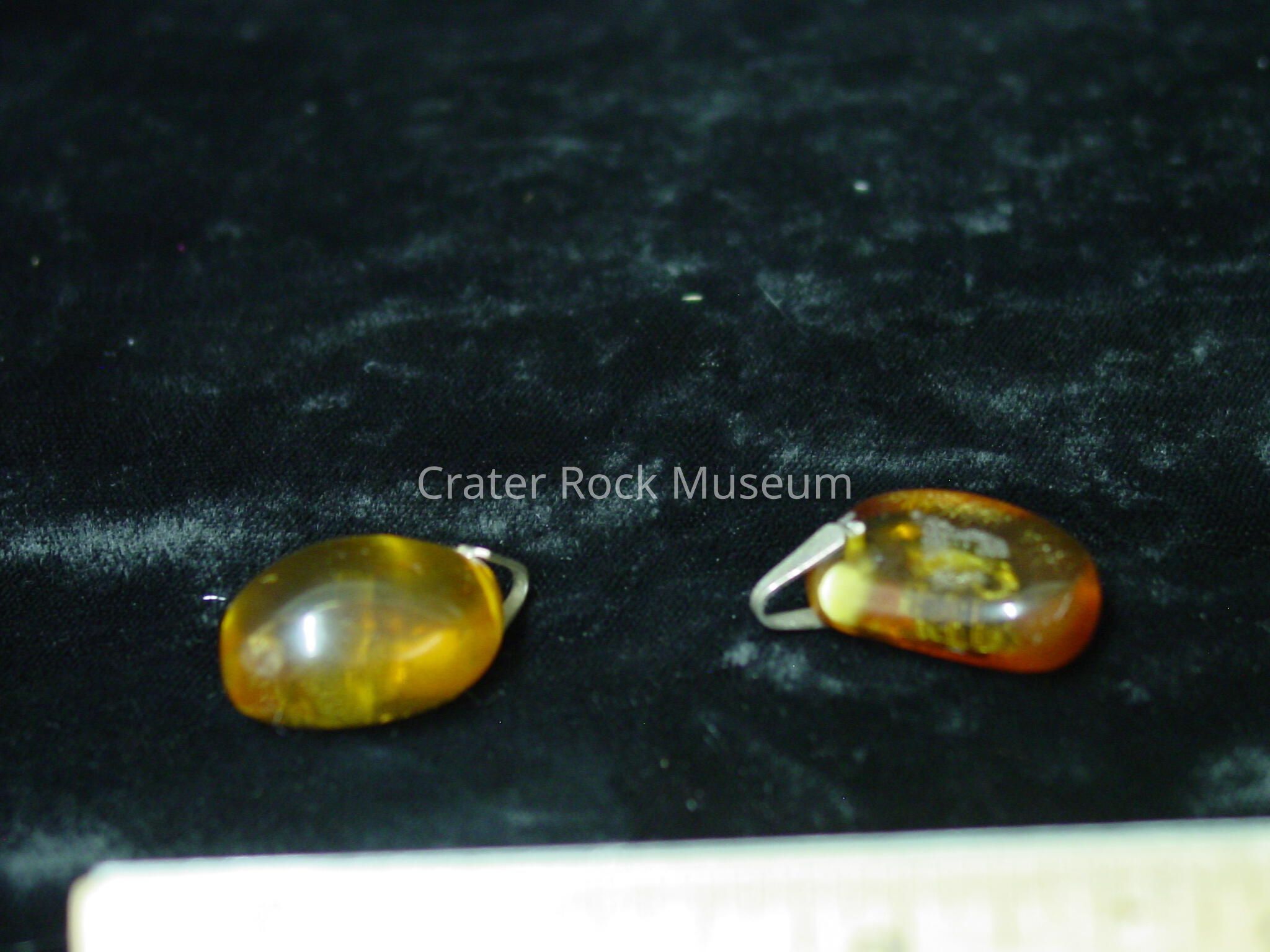 Description : 2 Amber pieces with an ant in it. Pieces have a metal piece attached for use as jewelry.