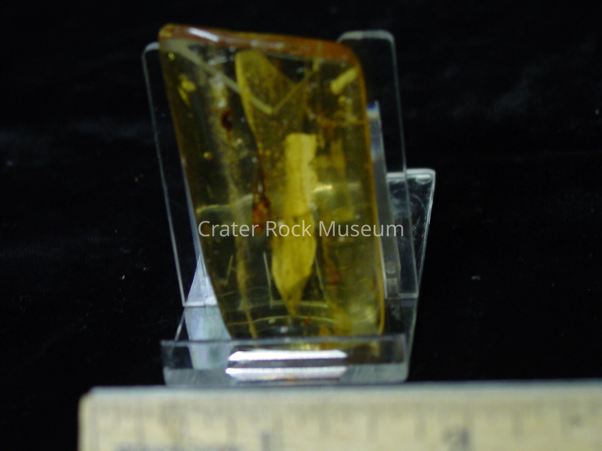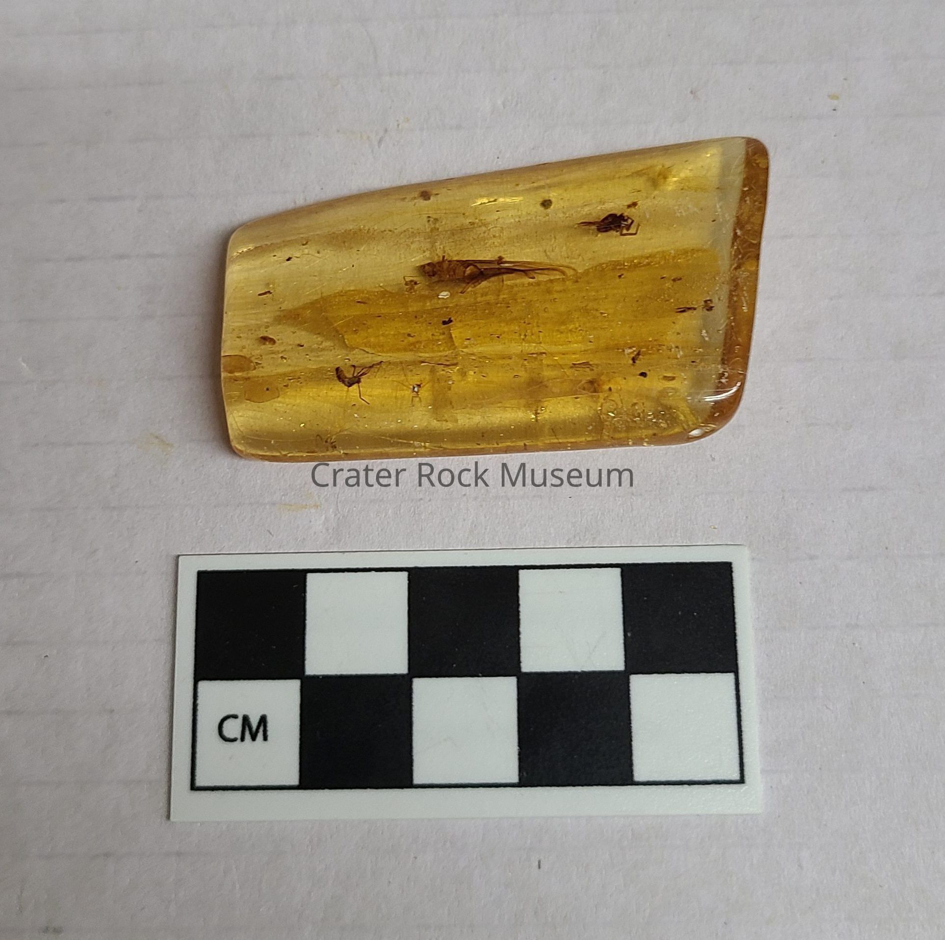 Description : A finished piece of amber,rectangular shaped with 3 bugs in it