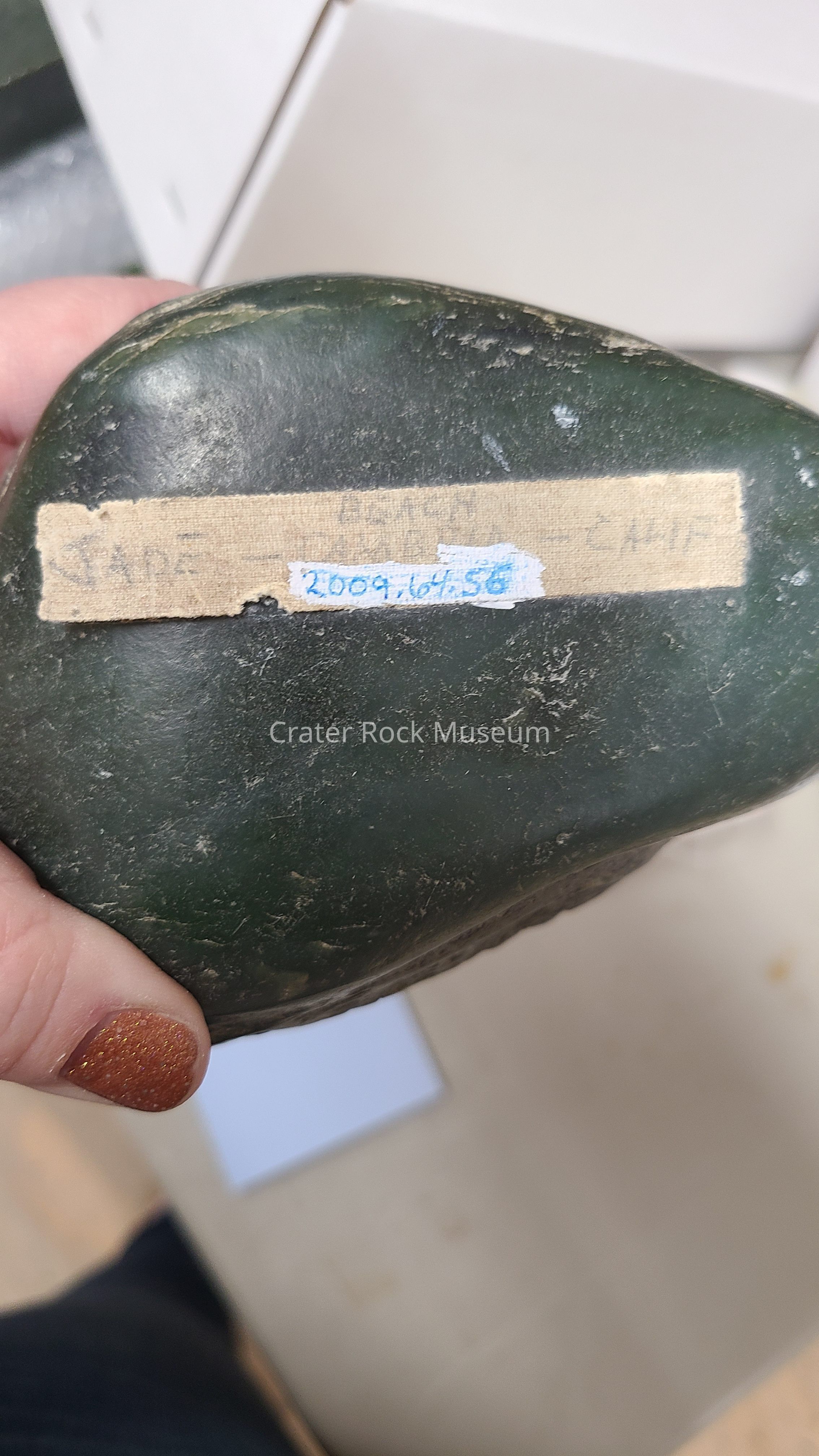 Description : A jade rock,rounded surfaces with one cut and polished face.