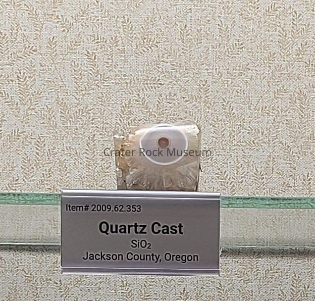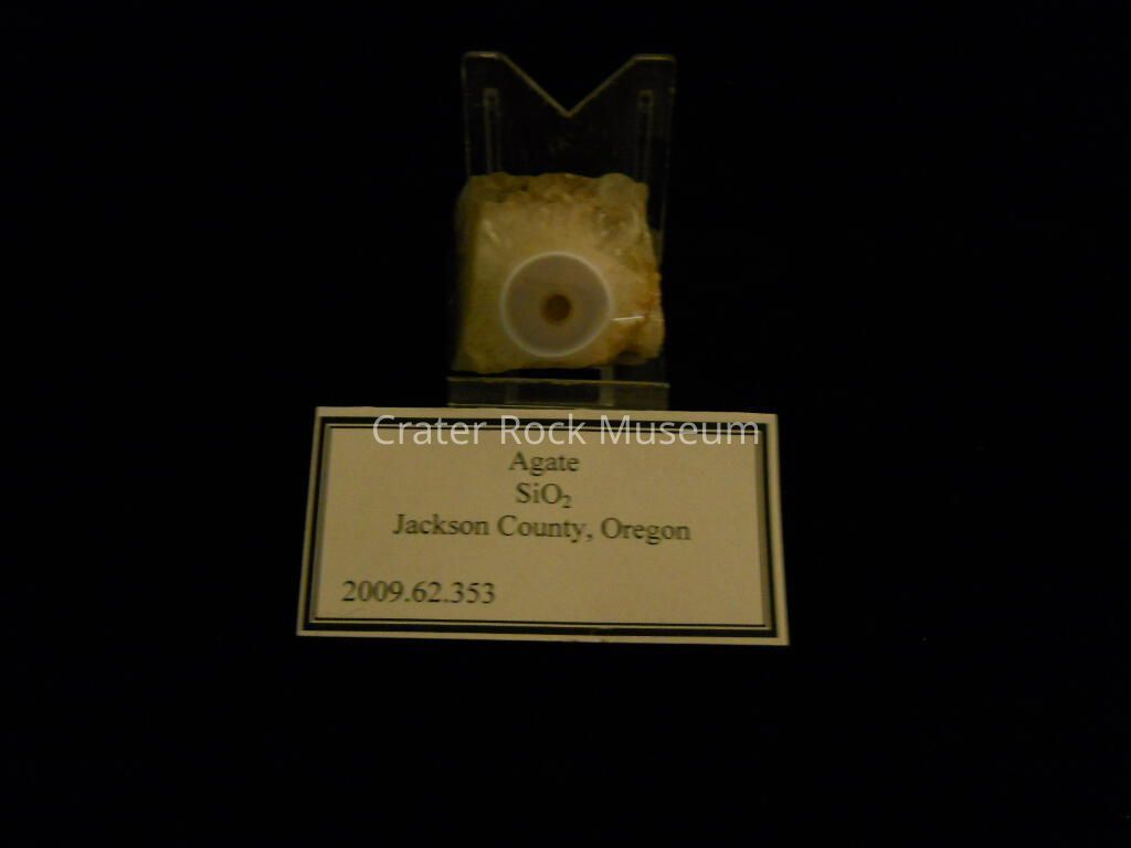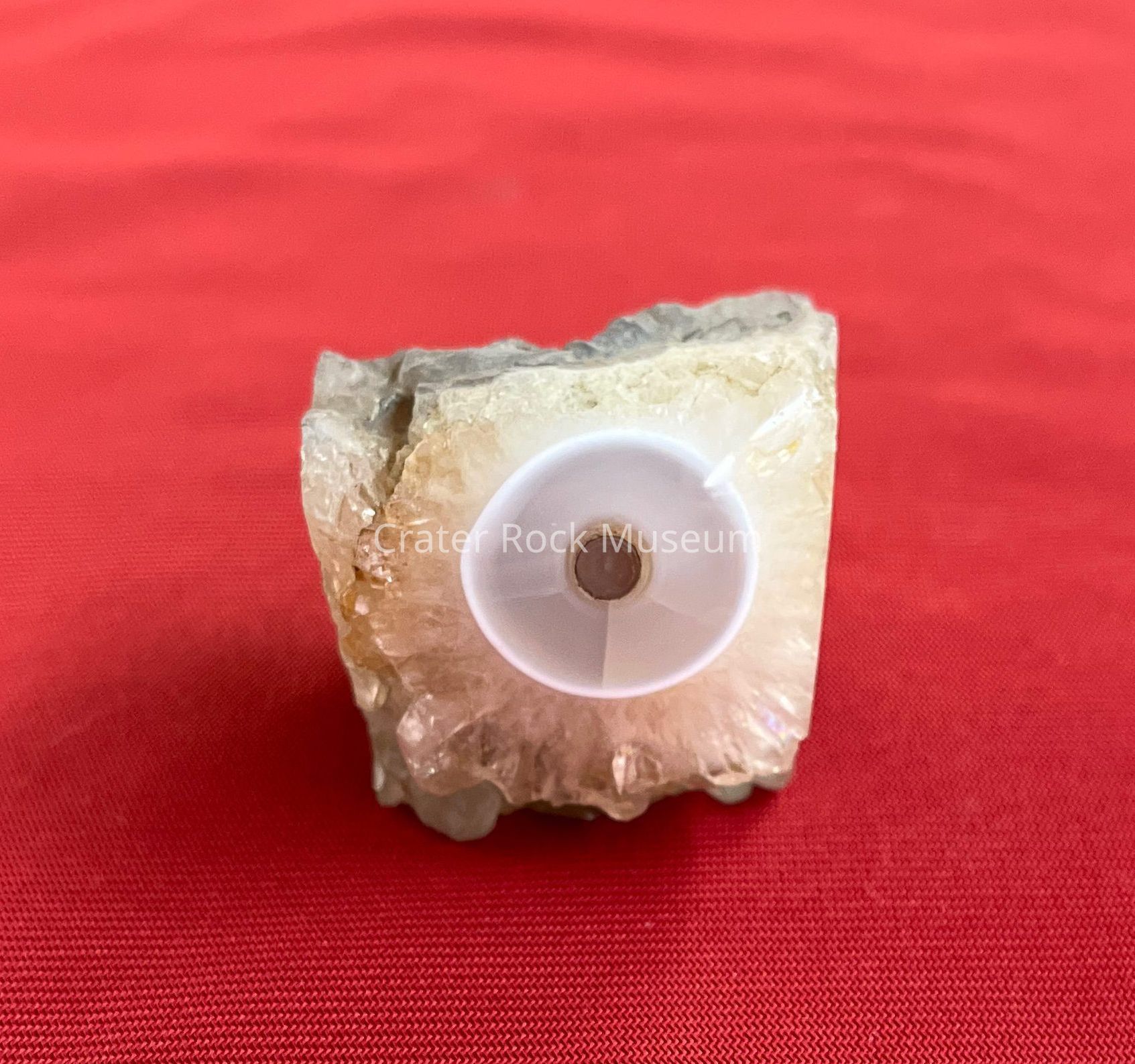 Description: Small, almost cubic with polished rounded face. Circular banding resembling an "eyeball" with a distinct white outer band and a brown spot in the center, in a translucent white crystalline matrix.Collection