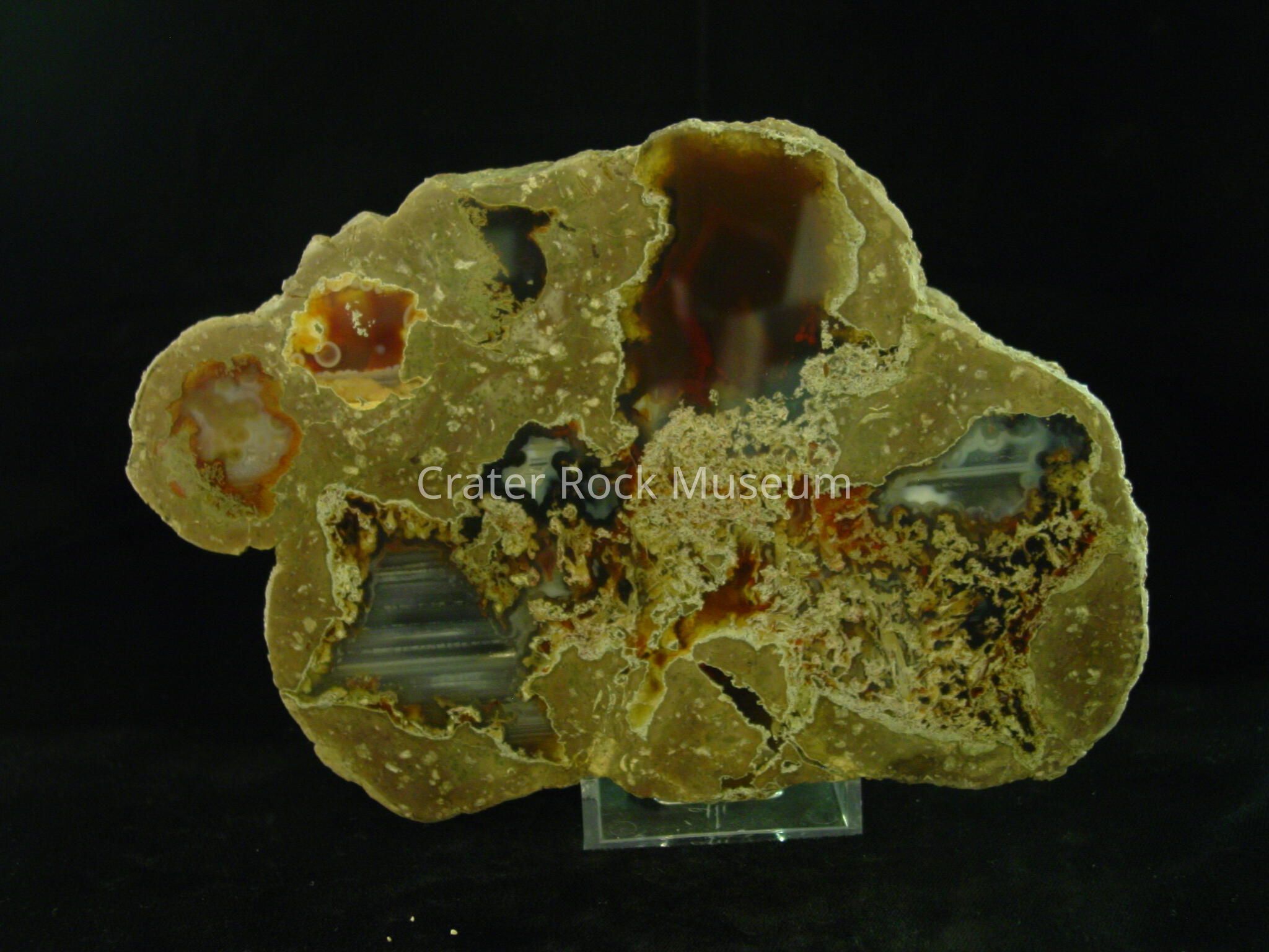 Description: Cut side of this thunderegg shows a multi-chambered formation with fortified agate