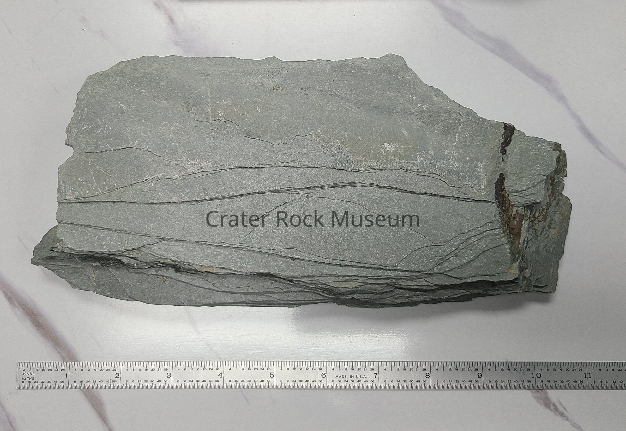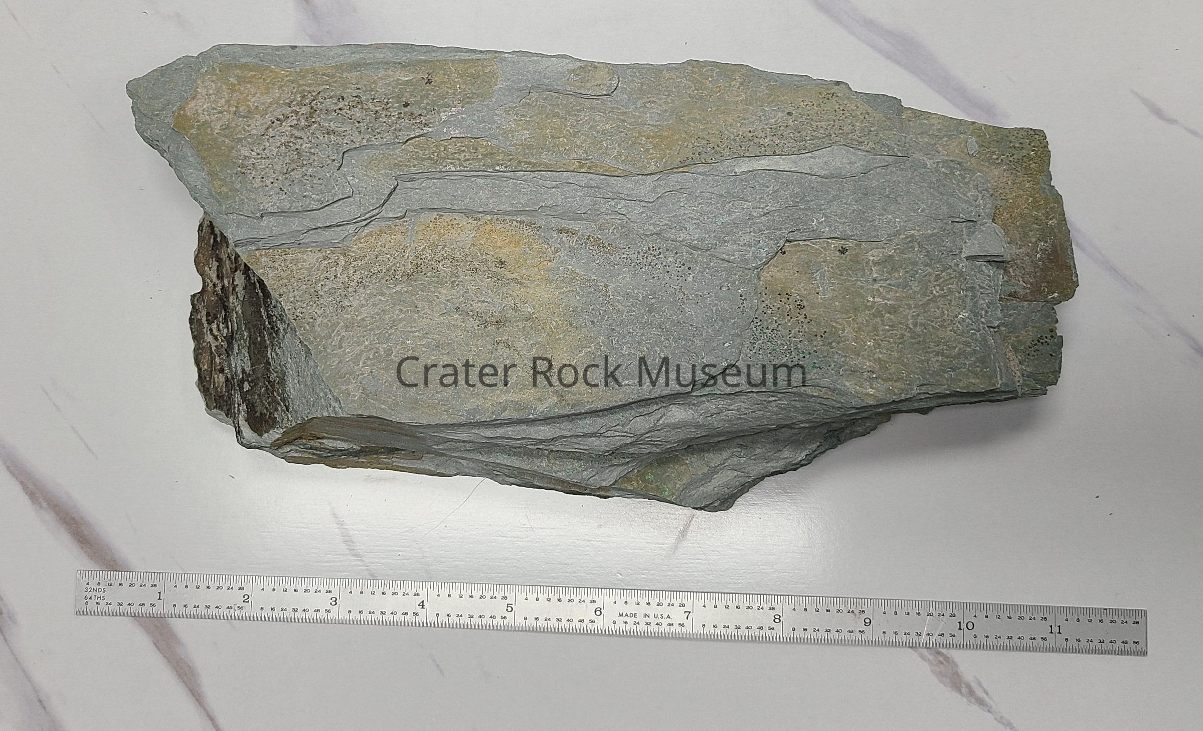green-grey sedimentary stone in thin layers See also: https://www.mindat.org/min-49444.html