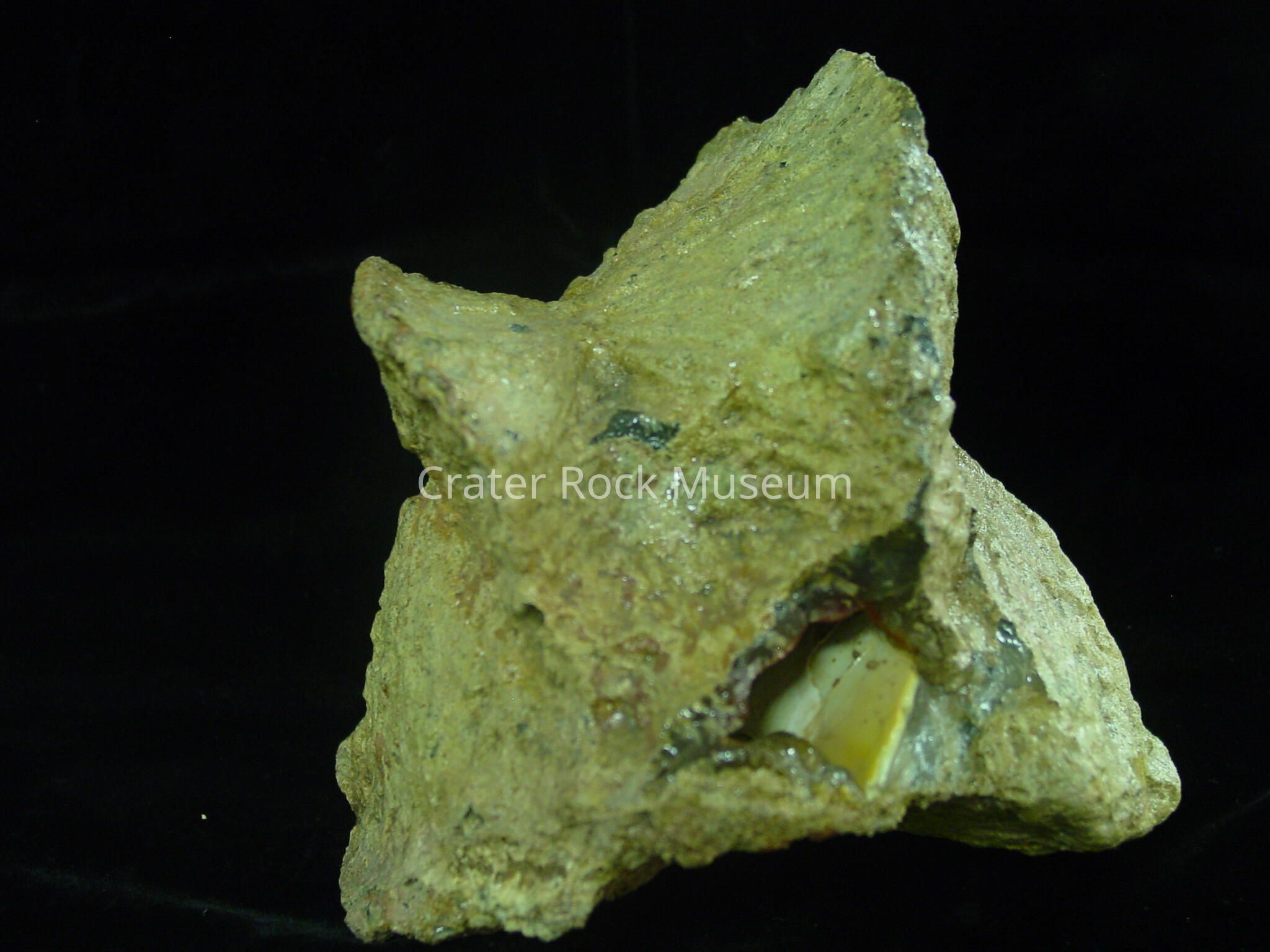 Description: 'Twinned', irregularly shaped, with 'fanned' extrusions jutting from a common center. Yellowish brown with a small hollowed-out section with a white area in its center.