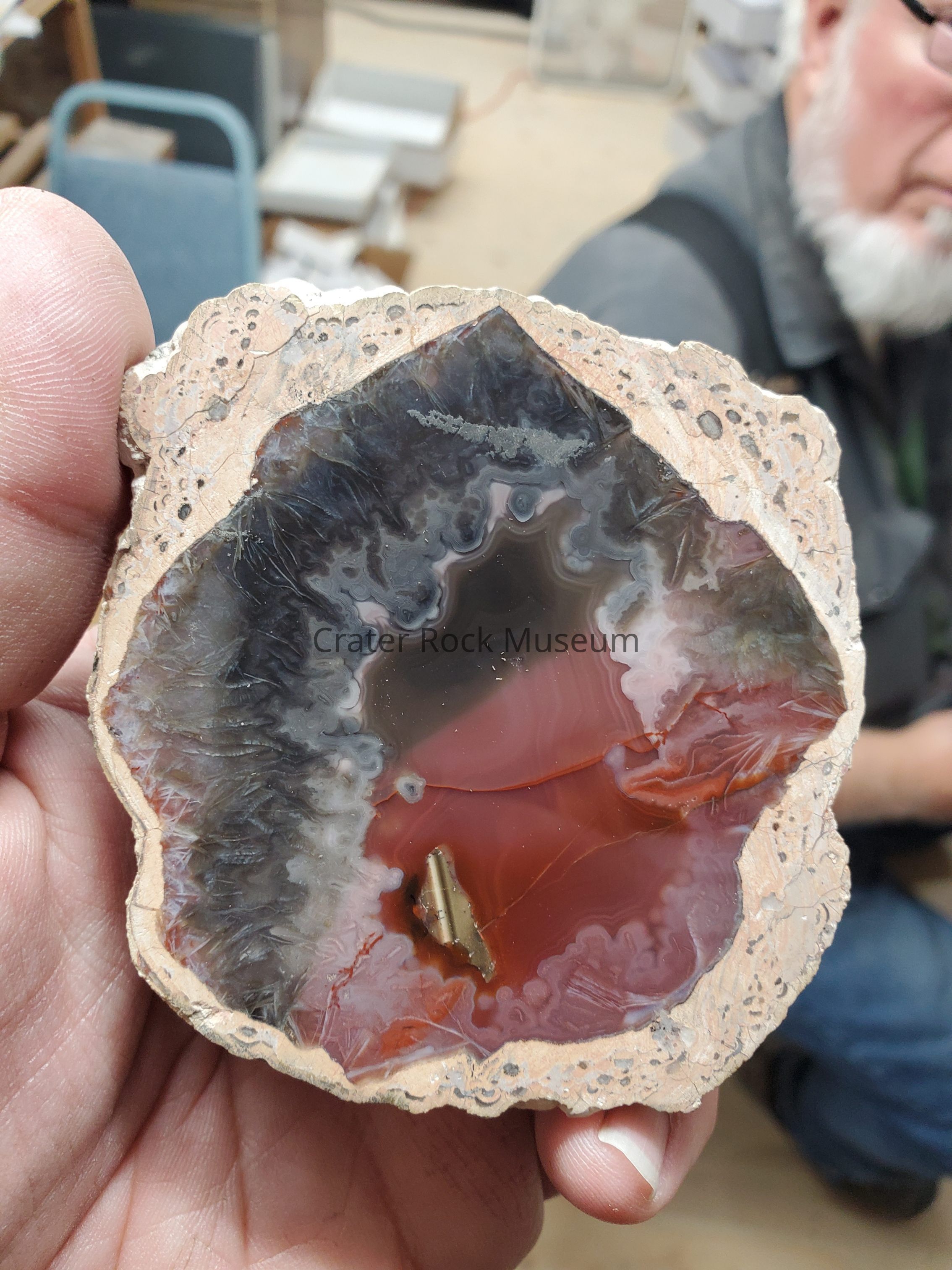 Crystal Habits are again widely variable but the most common habit is hexagonal prisms terminated with a six sided pyramid (actually two rhombohedrons). Three of the six sides of the pyramid may dominate causing the pyramid to be or look three sided. Left and right handed crystals are possible and identifiable only if minor trigonal pyramidal faces are present. Druse forms (crystal lined rock with just the pyramids showing) are also common. Massive forms can be just about any type but common forms include botryoidal, globular, stalactitic, crusts of agate such as lining the interior of a geode and many many more.