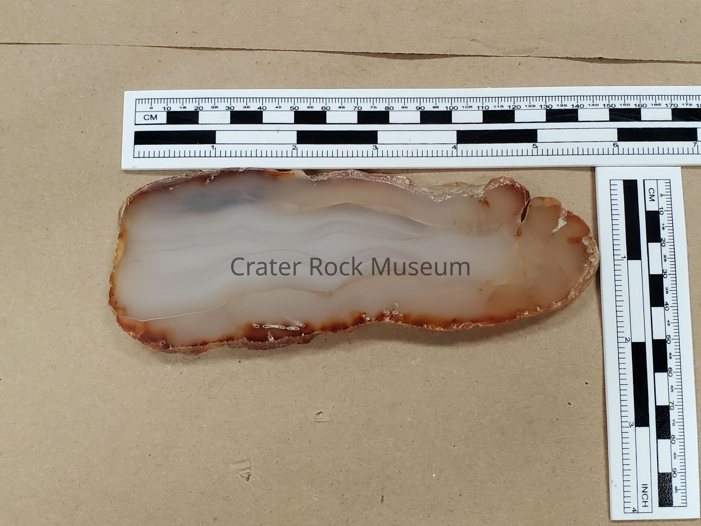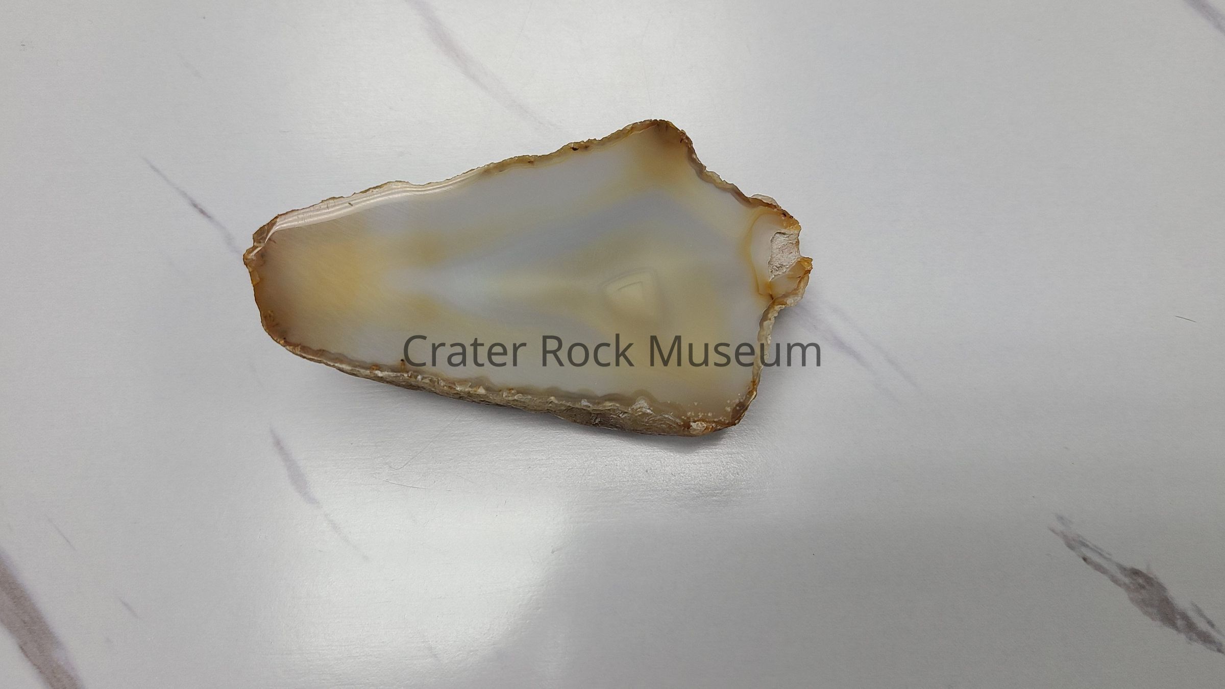 Five Agate Nodules and two slices of Agate from Bear Creek, Jackson County, OR. Varying in size. Polished sidesshow fortified Agate in colors ranging from White to Yellows to Pinks to Greys to Blues. One contains Crystals. Cracks present in four.Dimensions