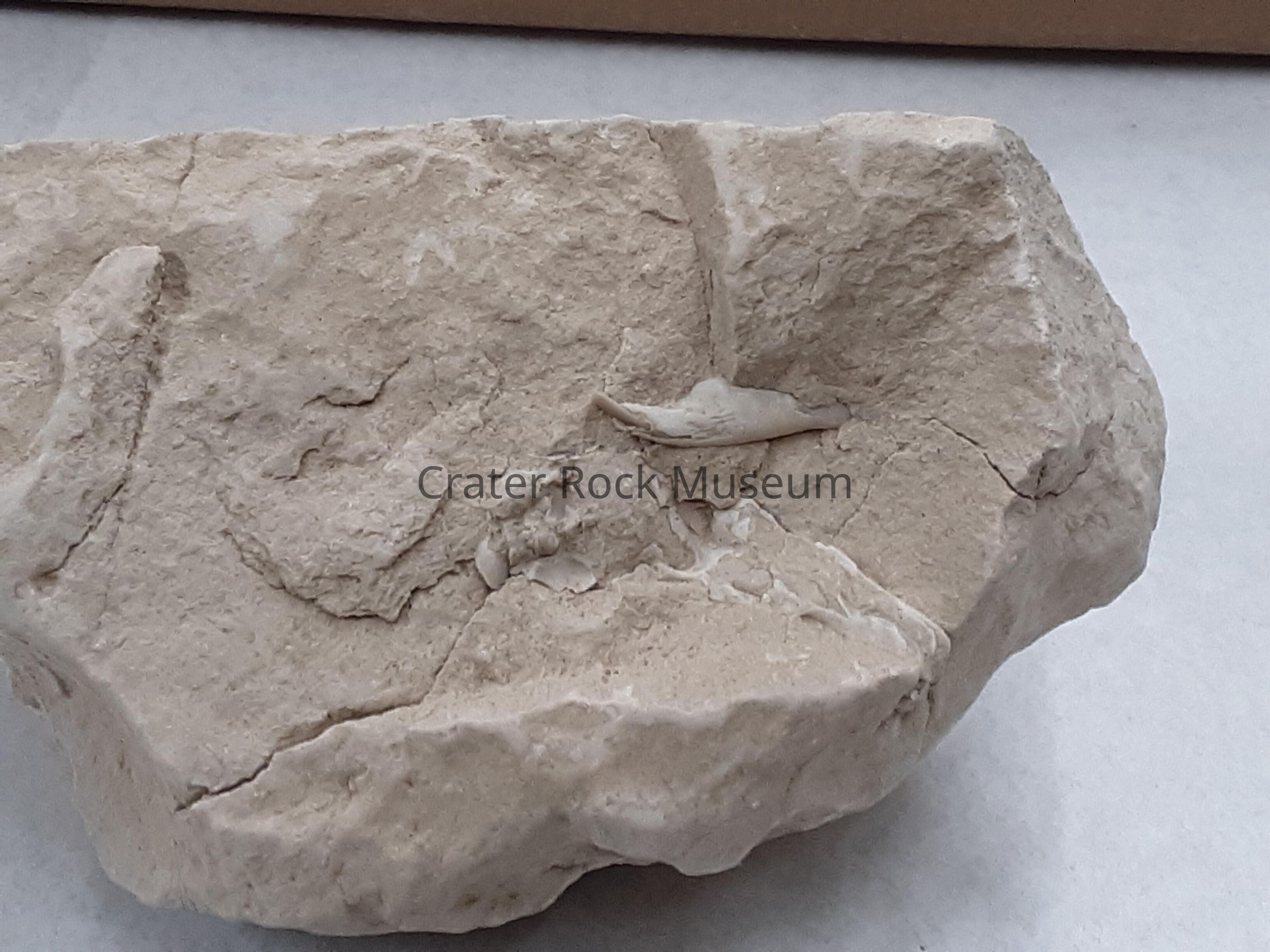 Rabbit cranium and upper jaw with incisors in claystone matrix block.