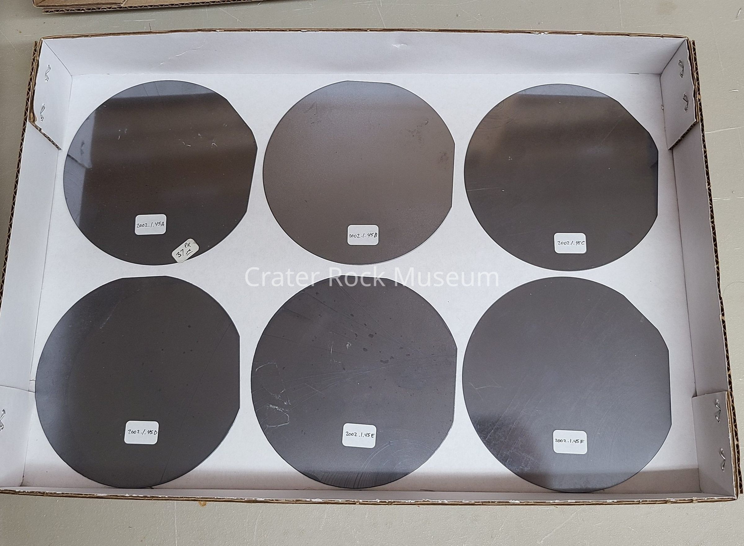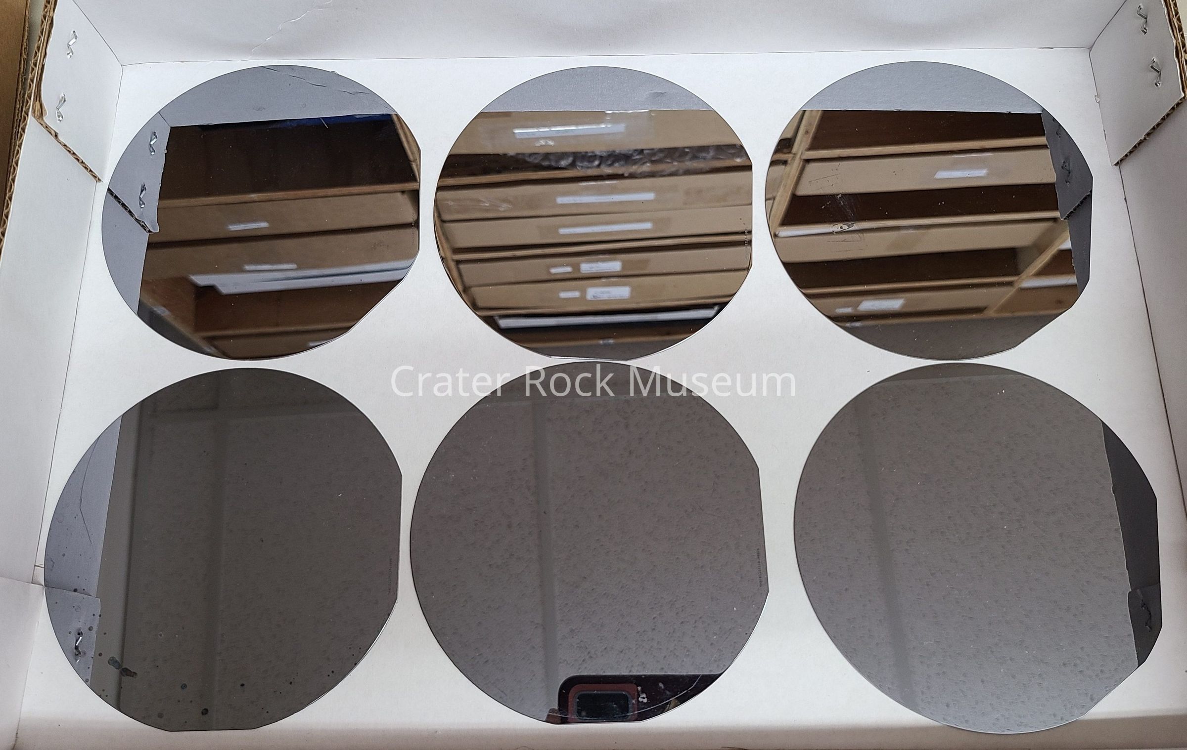Description: 6 Circular silicon wafers with no etchings. Silver-gray in color.