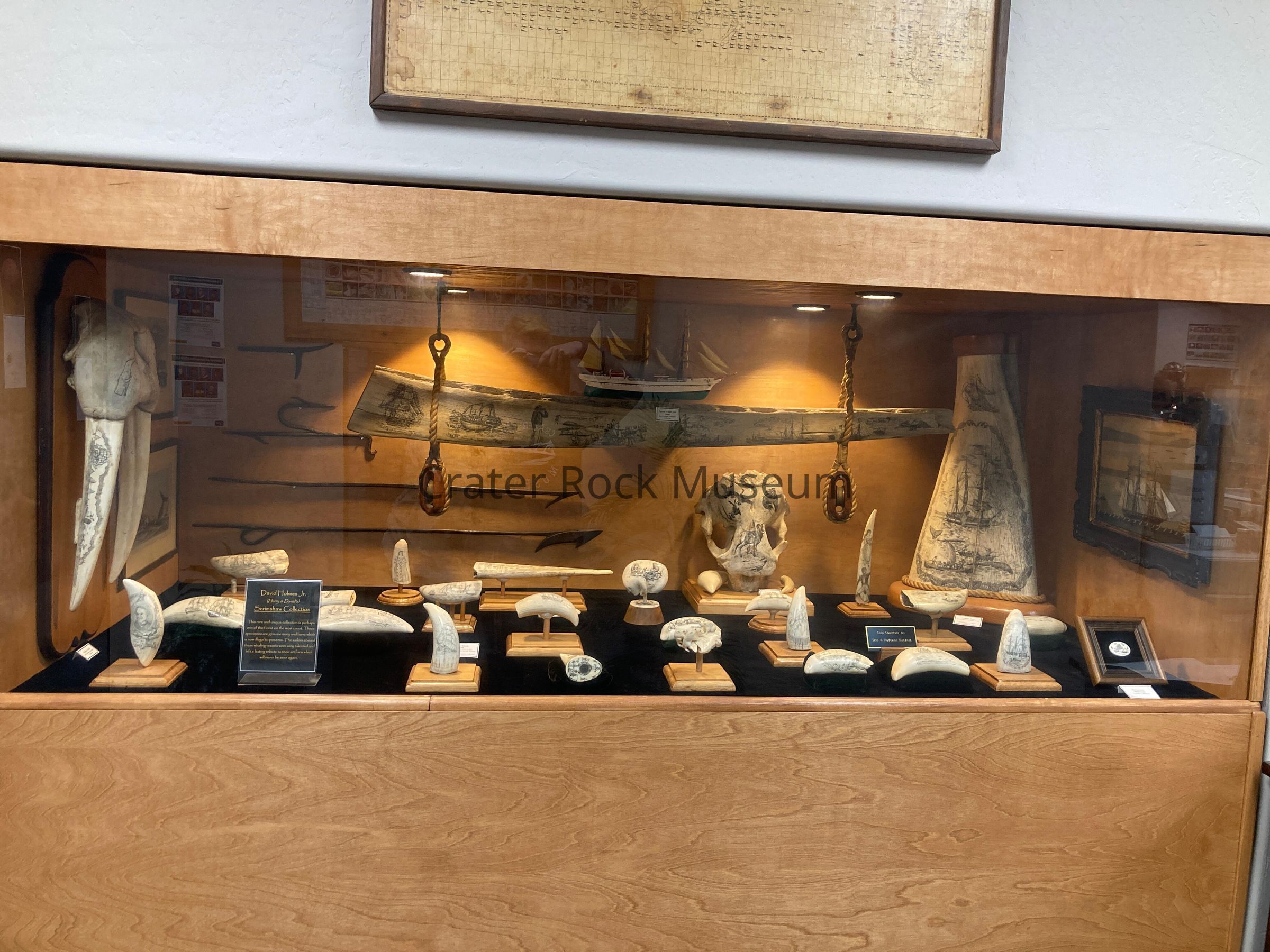 Scrimshaw is the name given to handiwork created by whalers made from the byproducts of harvesting marine mammals. It is most commonly made out of the bones and teeth of sperm whales, the baleen of other whales, and the tusks of walruses. It takes the form of elaborate engravings in the form of pictures and lettering on the surface of the bone or tooth, with the engraving highlighted using a pigment, or, less often, small sculptures made from the same material. However the latter really fall into the categories of ivory carving, for all carved teeth and tusks, or bone carving. The making of scrimshaw began on whaling ships between 1745 to 1759 on the Pacific Ocean, and survived until the ban on commercial whaling. The practice survives as a hobby and as a trade for commercial artisans. A maker of scrimshaw is known as a scrimshander.[1] Scrimshaw is also a surname. The etymology is uncertain, but there have been several proposals.[2]Collection