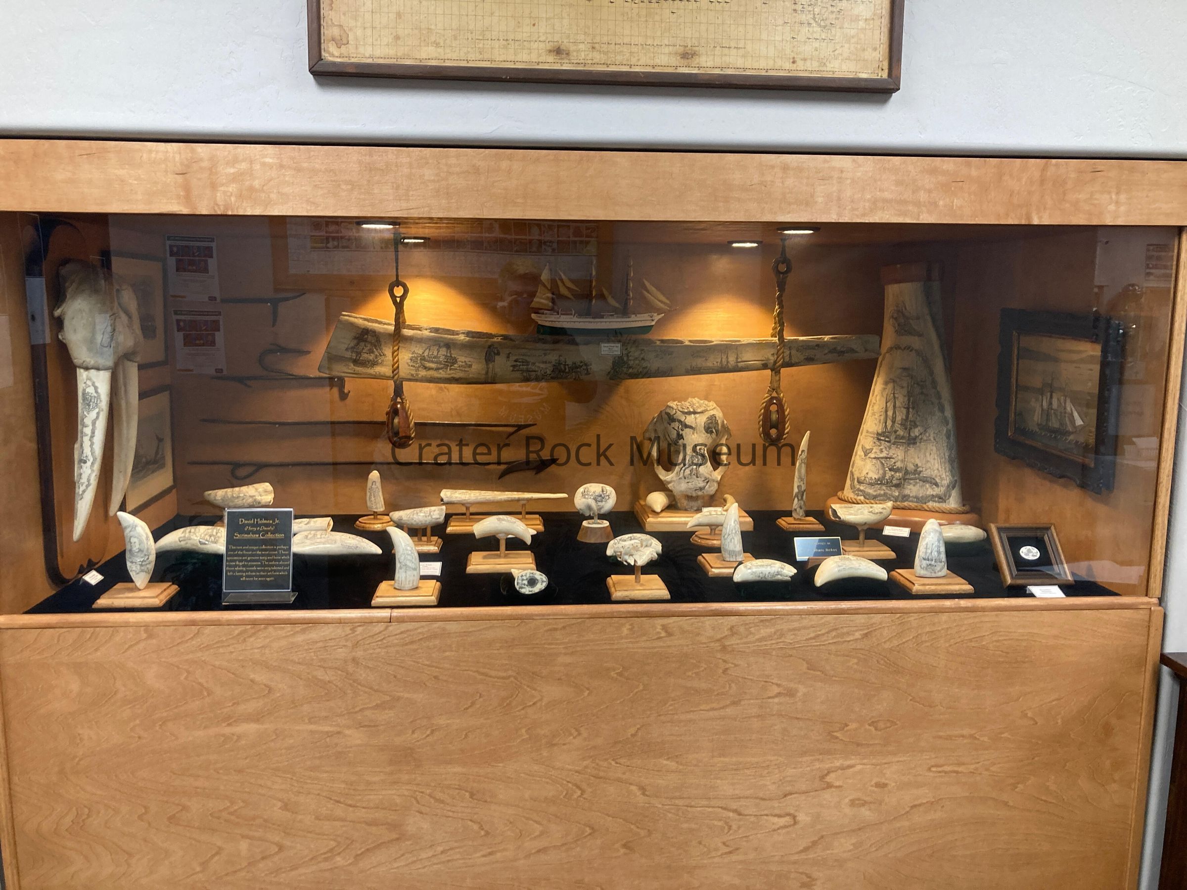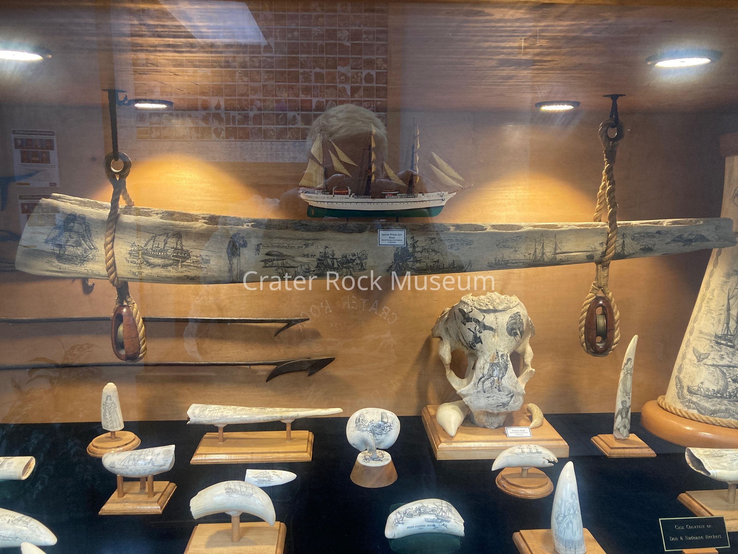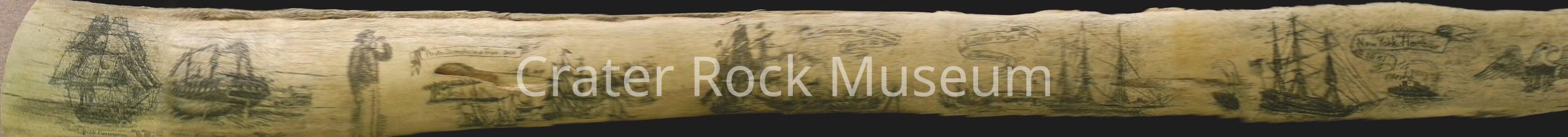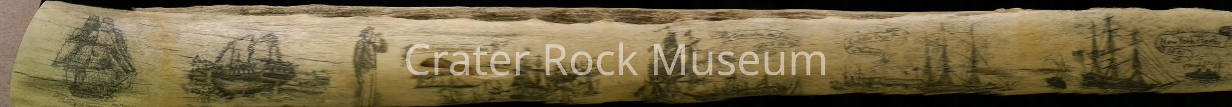 Scrimshaw is the name given to handiwork created by whalers made from the byproducts of harvesting marine mammals. It is most commonly made out of the bones and teeth of sperm whales, the baleen of other whales, and the tusks of walruses. It takes the form of elaborate engravings in the form of pictures and lettering on the surface of the bone or tooth, with the engraving highlighted using a pigment, or, less often, small sculptures made from the same material. However the latter really fall into the categories of ivory carving, for all carved teeth and tusks, or bone carving. The making of scrimshaw began on whaling ships between 1745 to 1759 on the Pacific Ocean, and survived until the ban on commercial whaling. The practice survives as a hobby and as a trade for commercial artisans. A maker of scrimshaw is known as a scrimshander.[1] Scrimshaw is also a surname. The etymology is uncertain, but there have been several proposals.[2]Collection