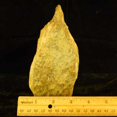 Description: This specimen is a scaly spire that has green and yellow and waxy texture.