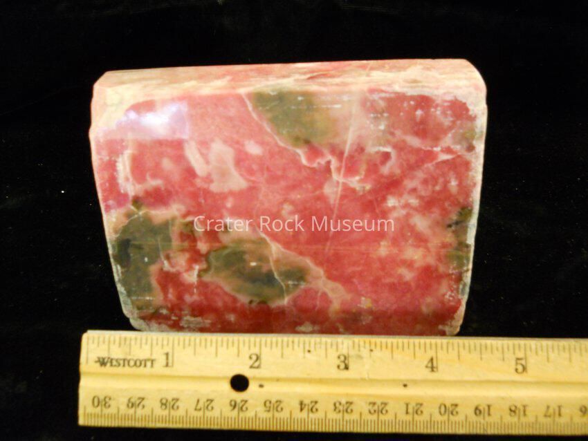 Description: This is a small rectangular slab. It has been polished on one side. The colors are pink and green